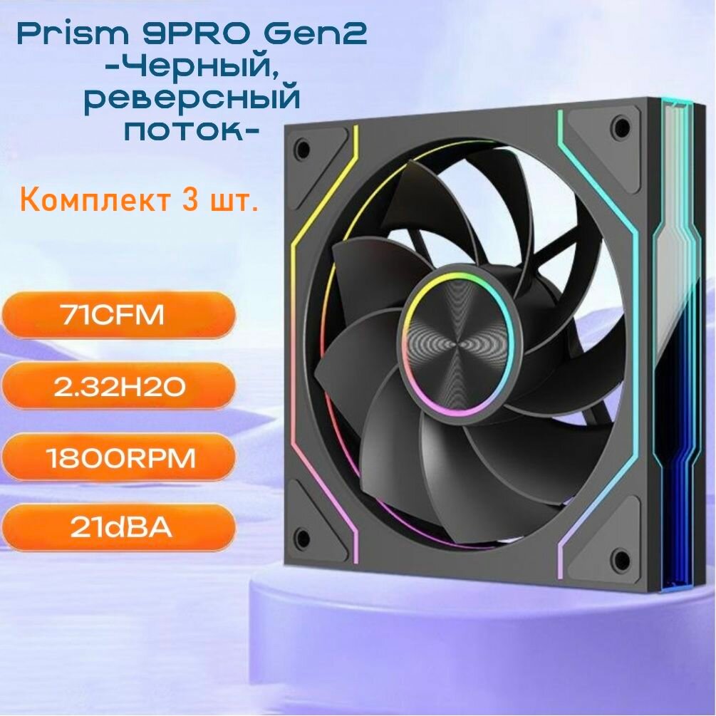 Вентилятор для корпуса Prism 9PRO, 3 штуки , 120мм, кулер, на выдув, чёрный