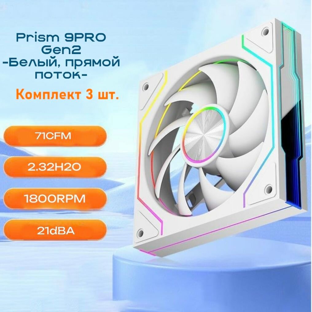 Купить Вентилятор для корпуса Prism 9PRO , 3 штуки , 120мм, кулер, на выдув, белый