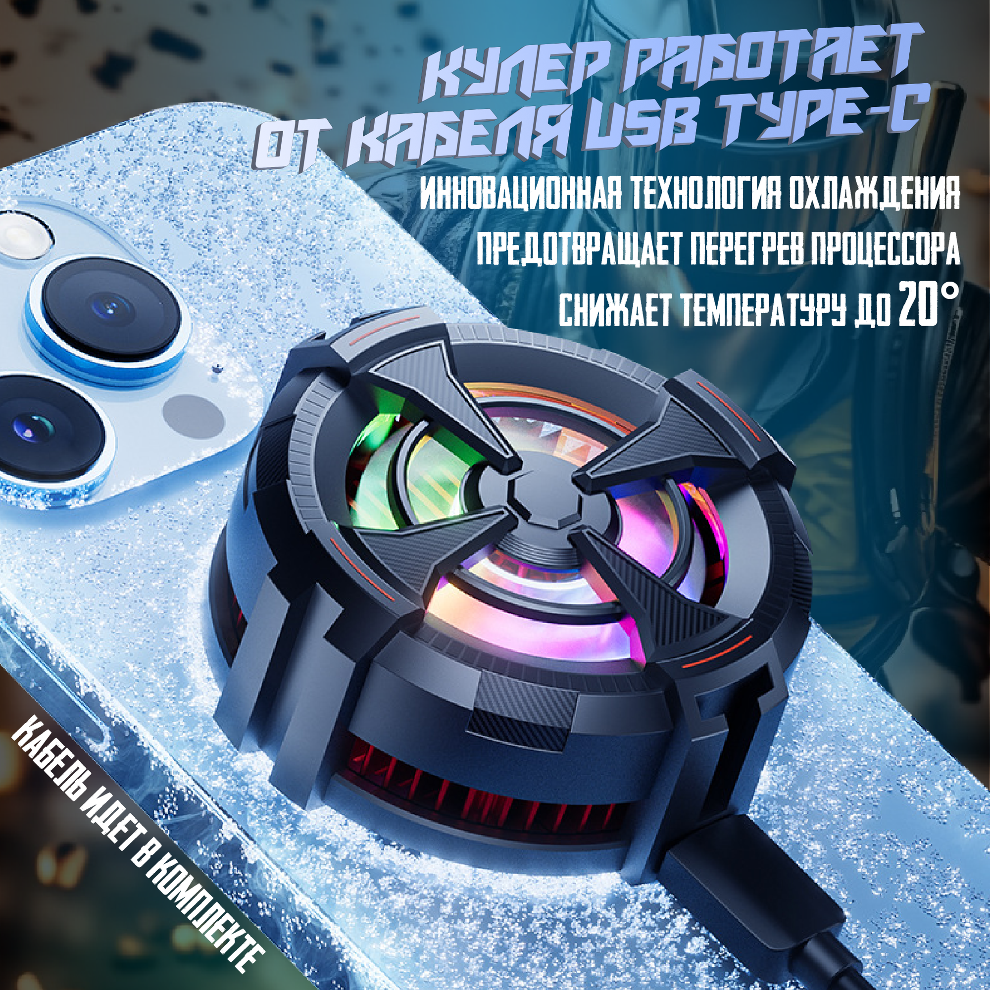 Кулер для телефона для охлаждения магнитный, игровой с RGB подсветкой интересное:
