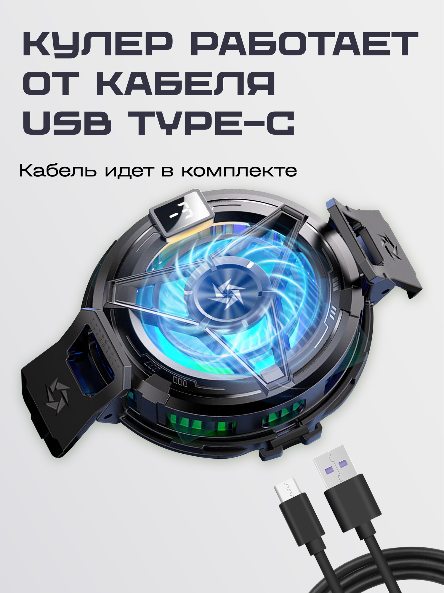 Кулер для телефона для охлаждения магнитный, игровой с RGB подсветкой, LED дисплей интересное: