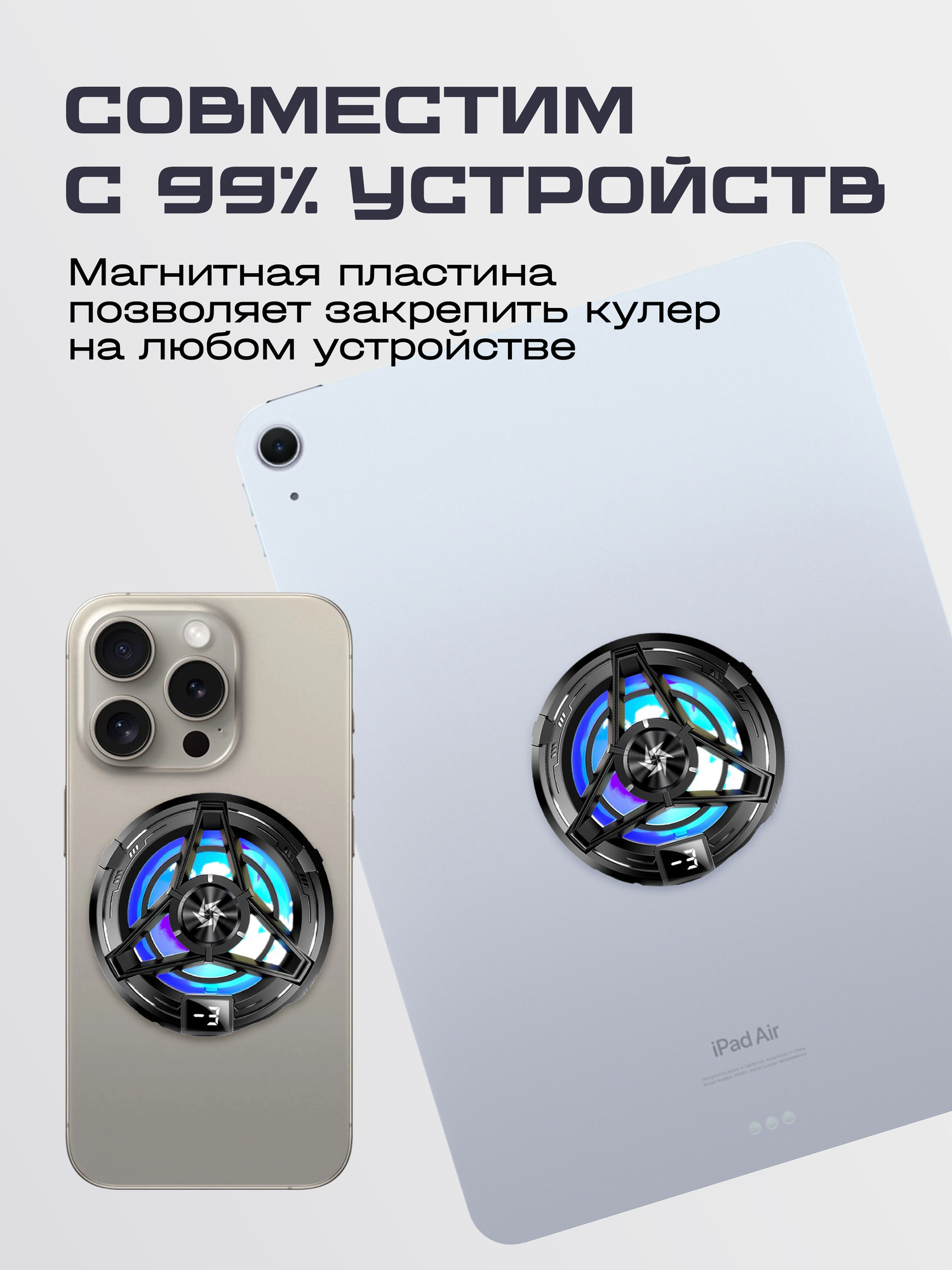 Кулер для телефона для охлаждения магнитный, игровой с RGB подсветкой