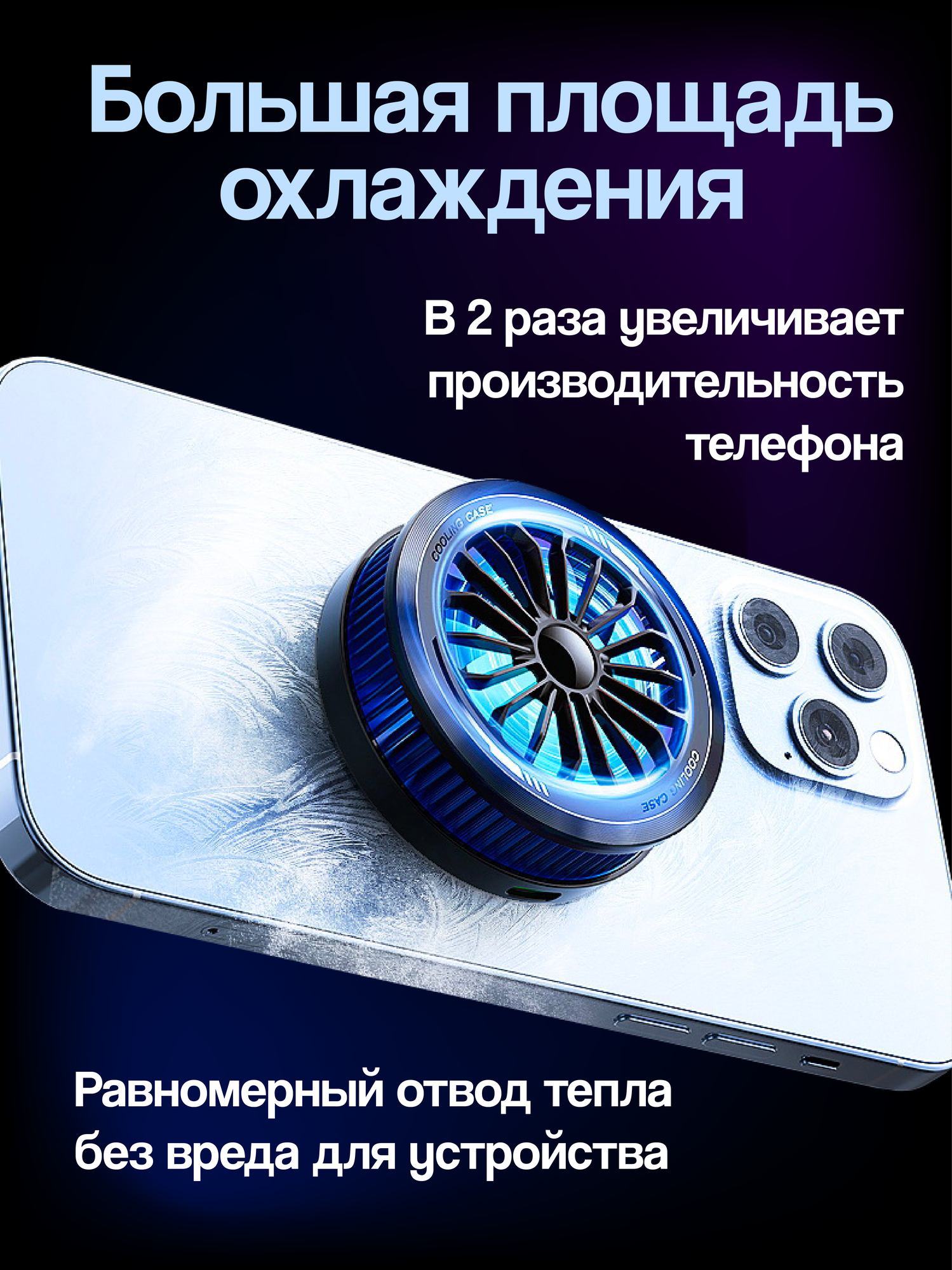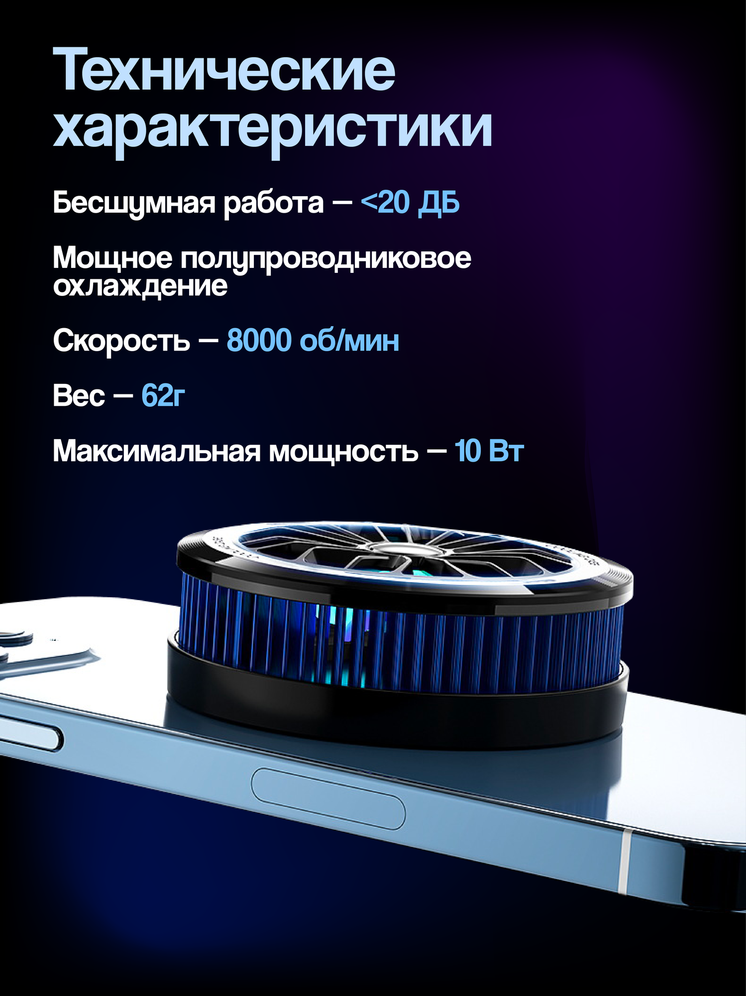 Кулер для телефона для охлаждения магнитный, RGB подсветка, мощный вентилятор интересное: