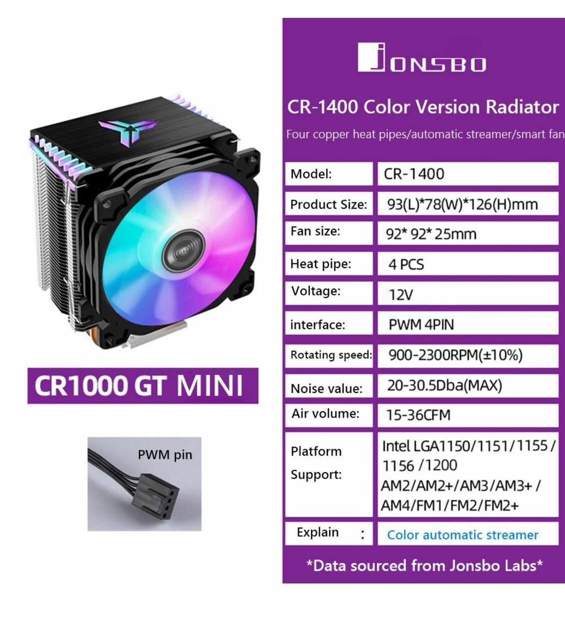 Ниже Вы можете прочитать отзывы на Кулер башня Jonsbo CR-1400, ARGB подсветка, для процессора, черный, ознакомится с подробными характеристиками, посмотреть интересные обзоры и фотографии на Кулер башня Jonsbo CR-1400, ARGB подсветка, для процессора, черный.