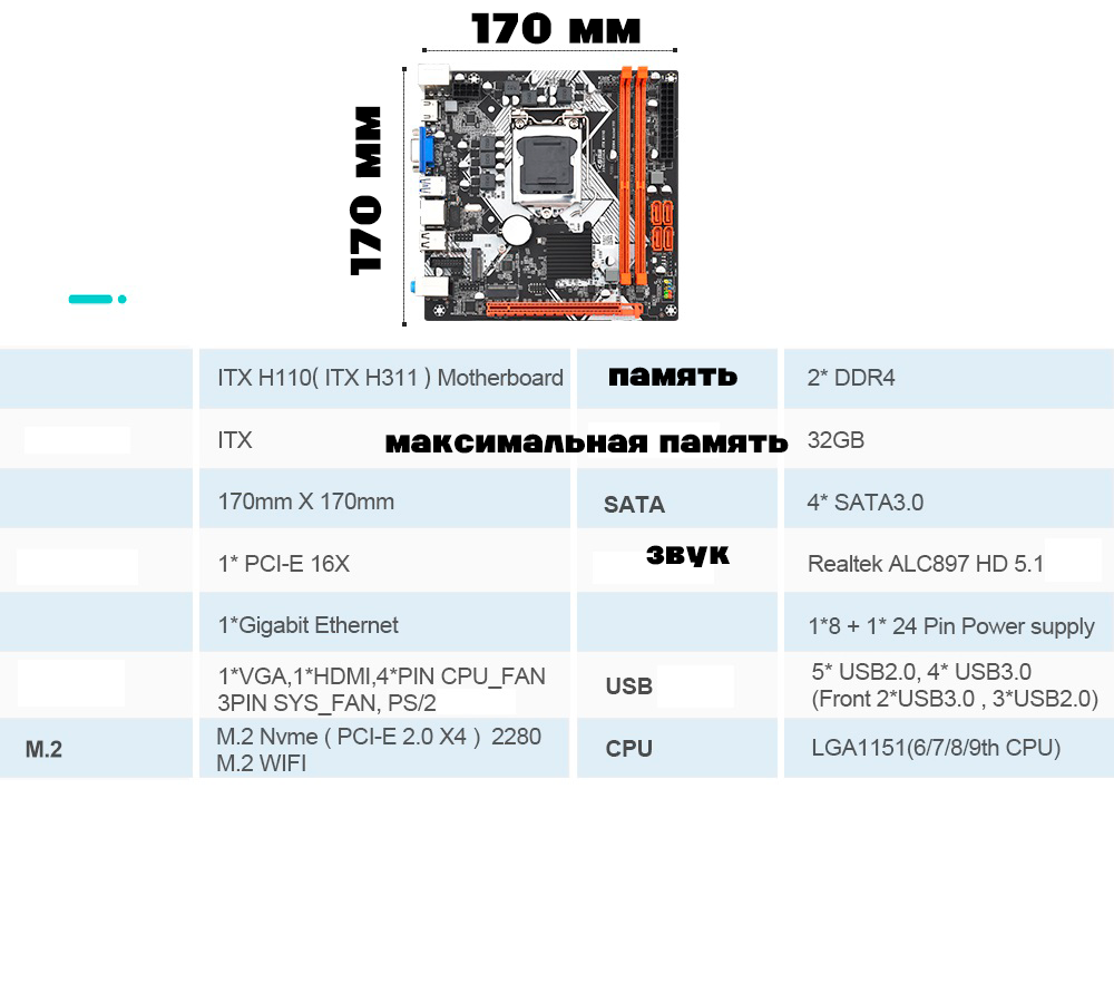 Материнская плата JINGSHA Mini ITX H110, DDR4 до 32 ГБ, сокет LGA1151, для Core i3/i5/i7 интересное: