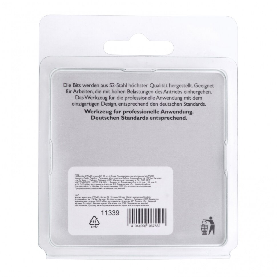 Набор бит Gross 11339, сталь S2, PZ1 х 25, 10 шт 9359123 .
