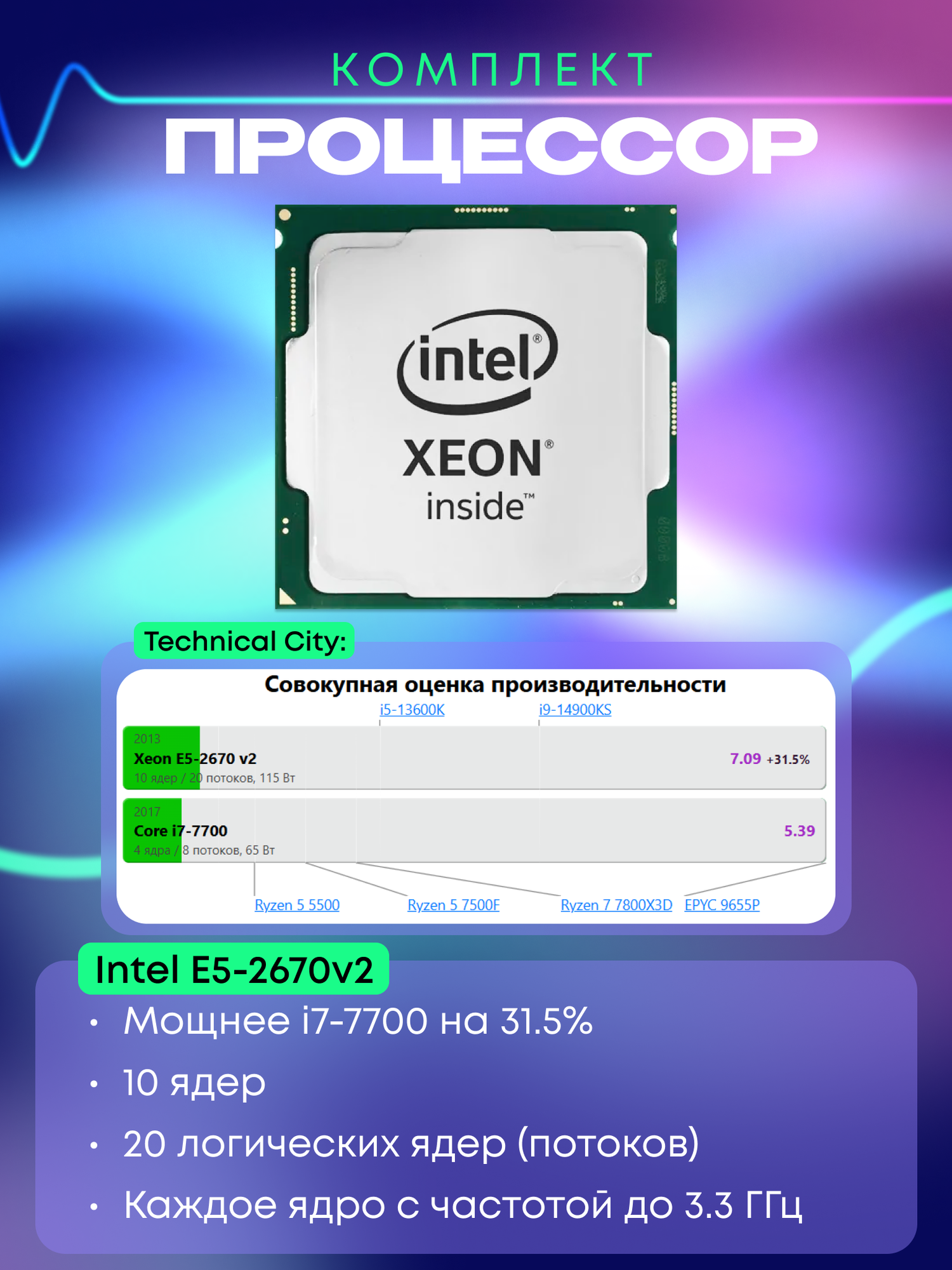 Игровой комплект, Intel Xeon E5-2670V2, 32GB RAM, RGB кулер, Wi-Fi адаптер интересное: