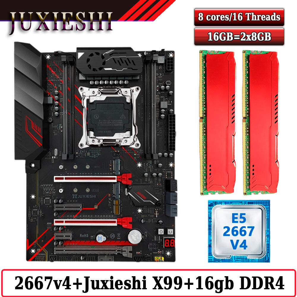Купить Комплект материнская плата Juxieshi X99-MR9A PRO + Xeon 2667V4 + 16GB DDR4 ECC 2x8GB Red