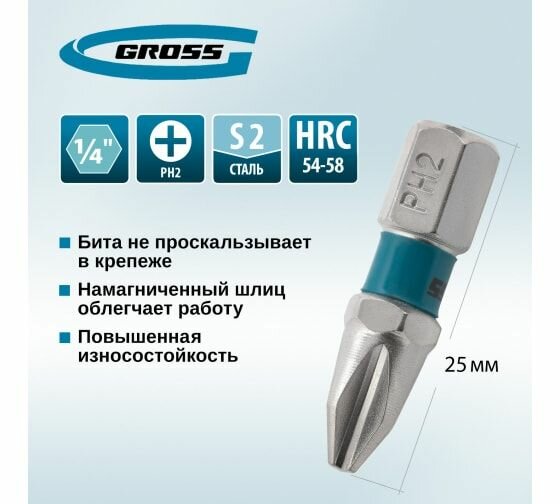Бита РН2 х 25, сталь S2, 2 шт. Gross