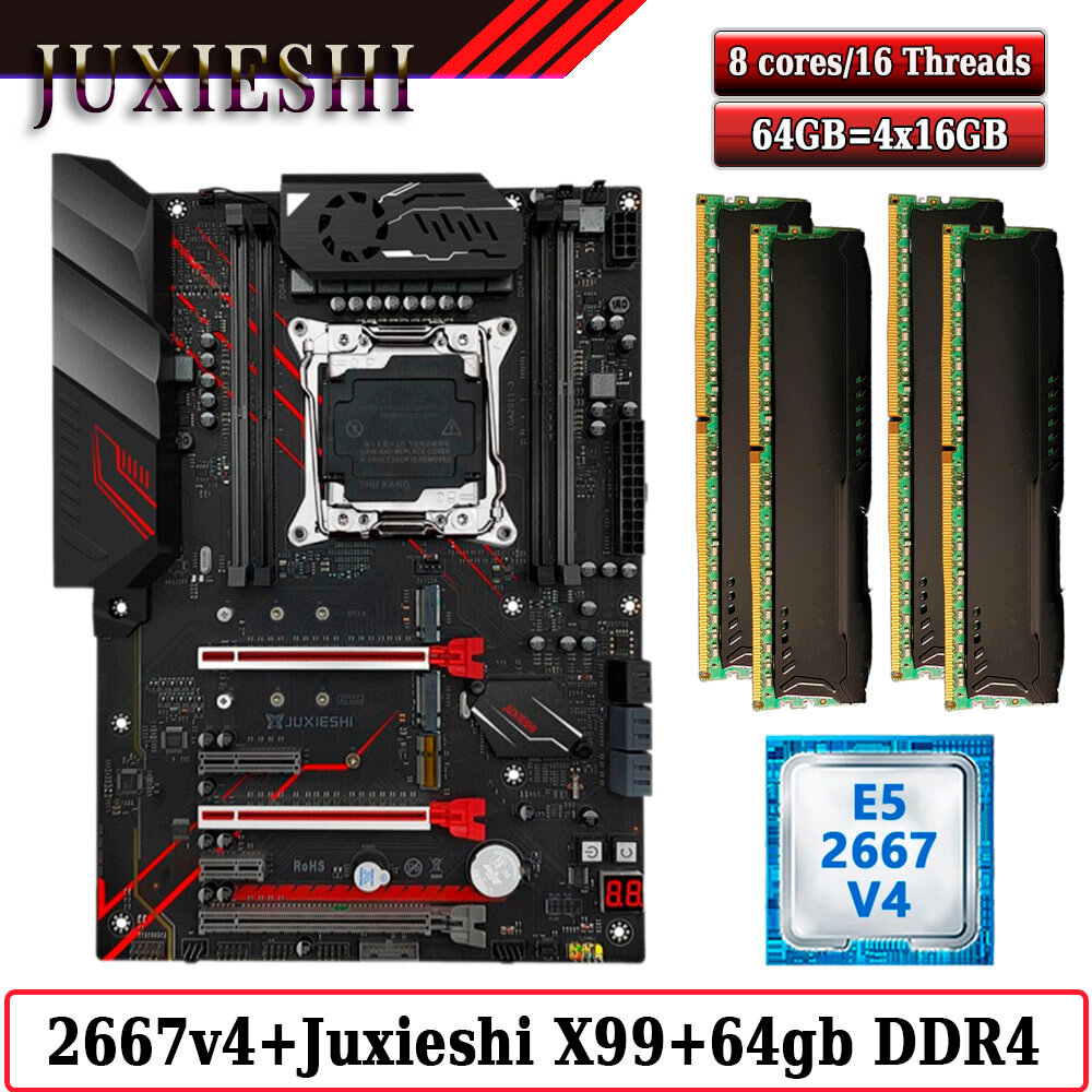 Купить Комплект материнская плата Juxieshi X99-MR9A PRO + Xeon 2667V4 + 64GB DDR4 ECC 4x16GB Black