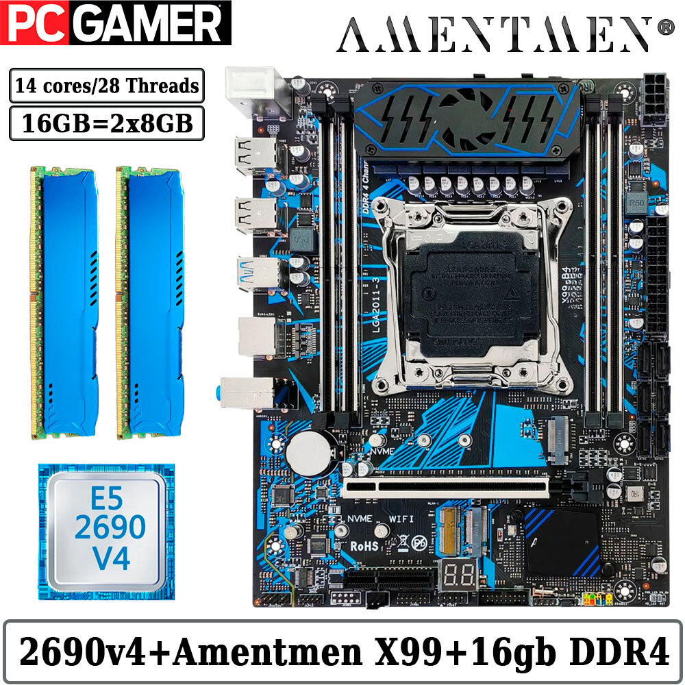Купить Комплект материнская плата Amentmen X99-B4 + Xeon 2690V4 + 16GB DDR4 ECC REG 2x8GB Blue