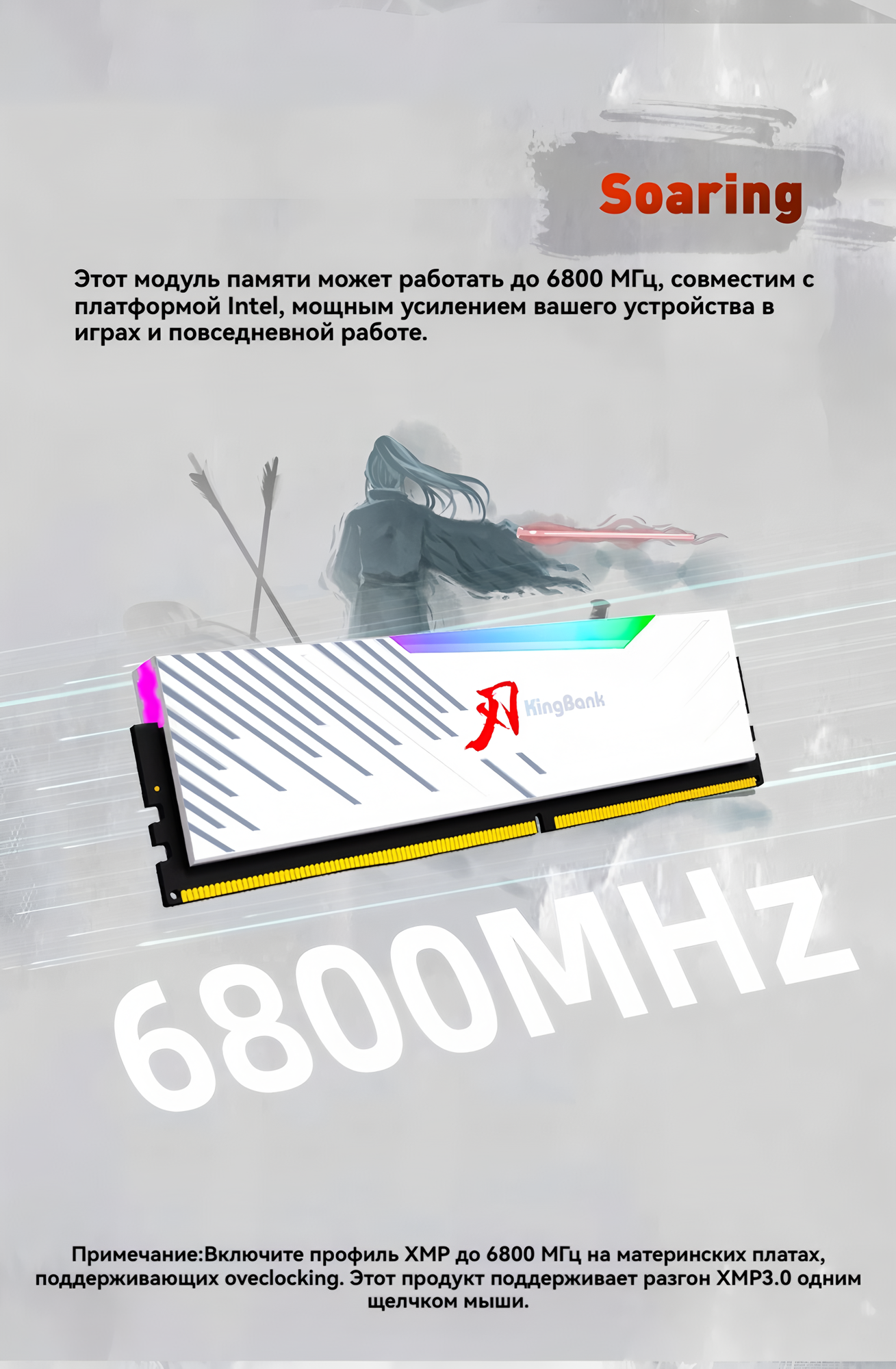 Kingbank Модуль памяти DDR5 6000MHz 2*16GB 32GB UDIMM Heatsink RGB DRAM (Hynix M-die C34) интересное: