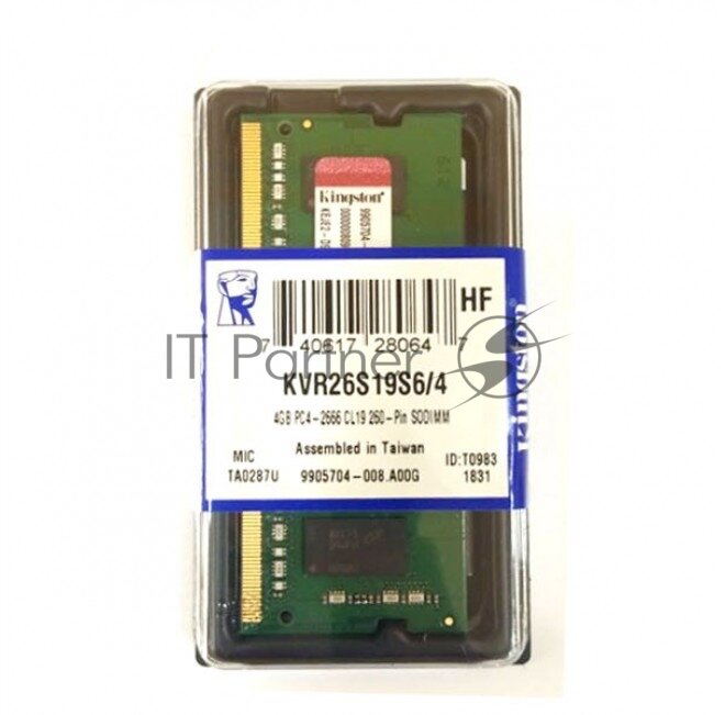 Купить Модуль памяти NBook SO-DDR4 4Gb, 2666Mhz, Kingston (KVR26S19S6/4 (OEM))