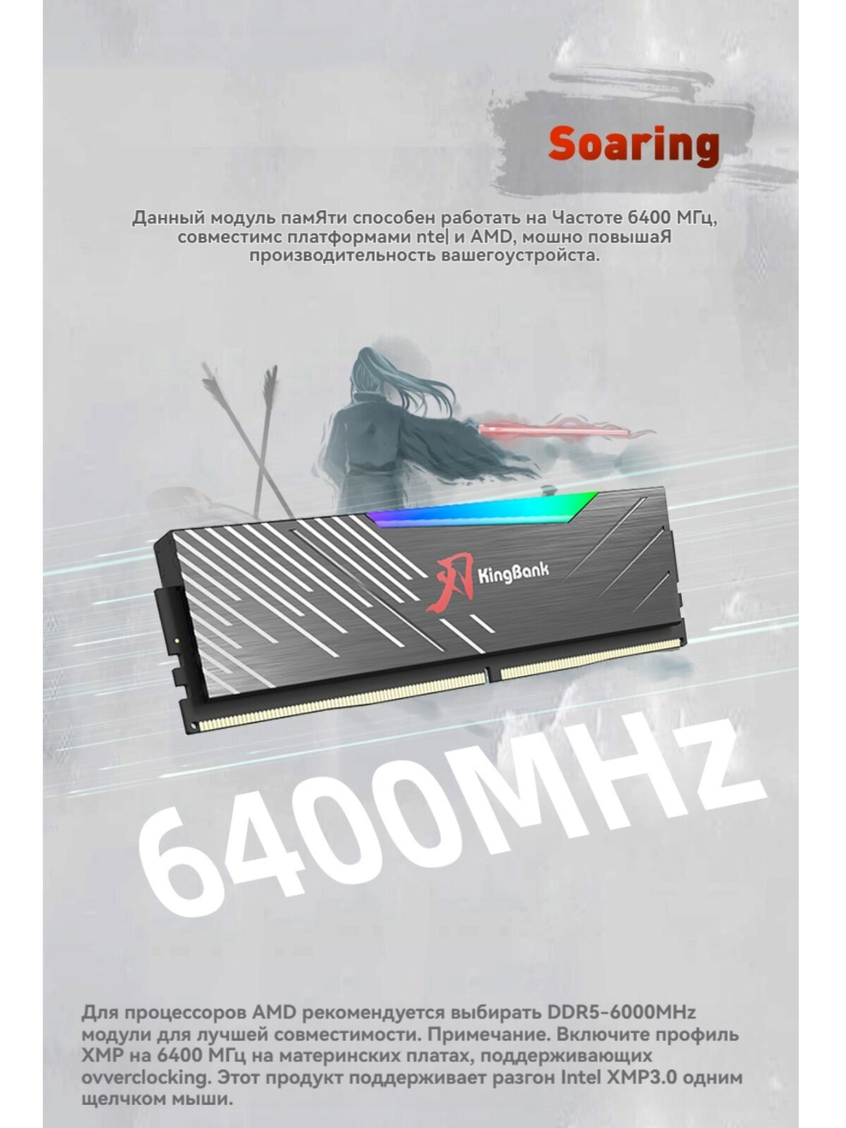Kingbank Оперативная память Dark Soarblade RGB DDR5 UDIMM 6400MHz 2*48GB Drak Heatsink (Hynix M-die c32 ) интересное: