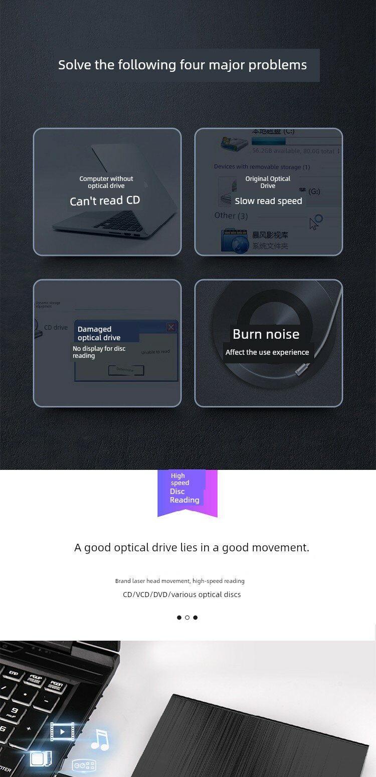 Внешний портативный DVD/VCD привод USB 3.0 - Чтение