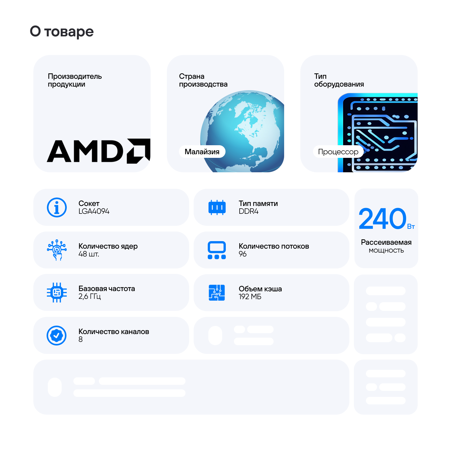 Купить Процессор AMD EPYC 7K62 2,6 ГГц 48C/96T 192 МБ 240 Вт 100-639 совместим для замены с AMD Epyc 7642