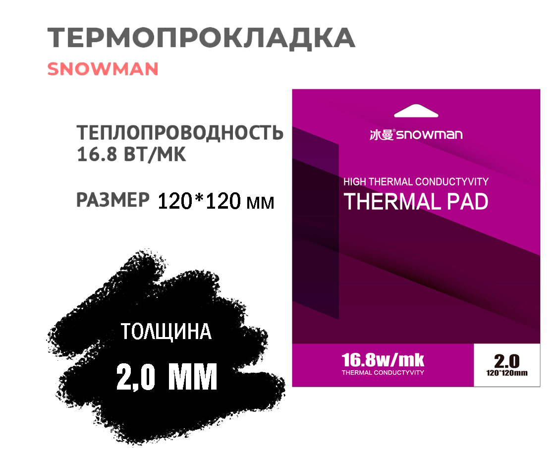 Купить Термопрокладка силиконовая Snowman 16,8 Вт 2,0мм для рассеивания тепла процессора/графического процессора, 120*120см, 2,0мм