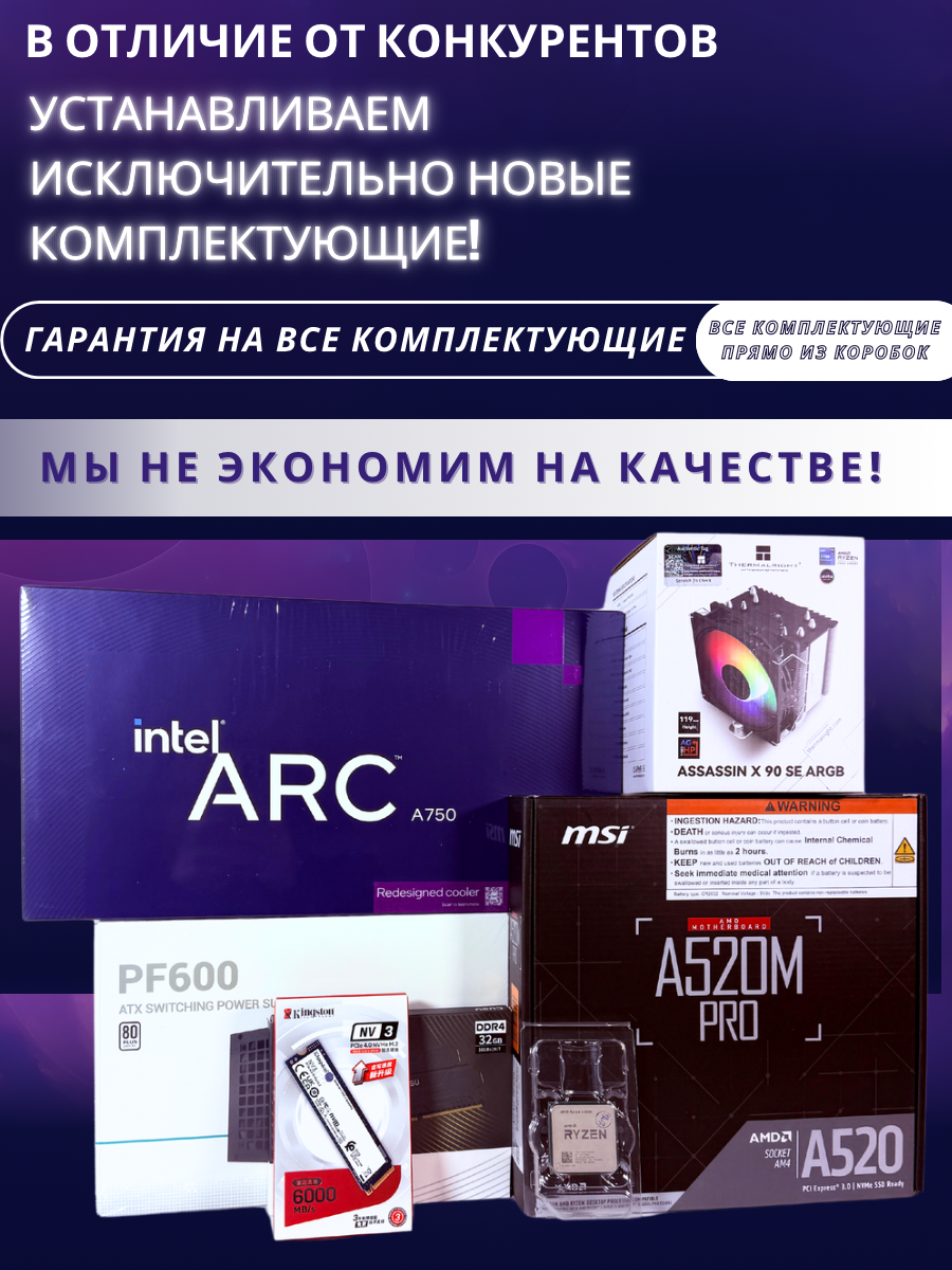 Системный блок Rocket (AMD Ryzen 5 5500, Intel Arc A750, SSD M2 1TB, DDR4 32GB, Windows 11) интересное: