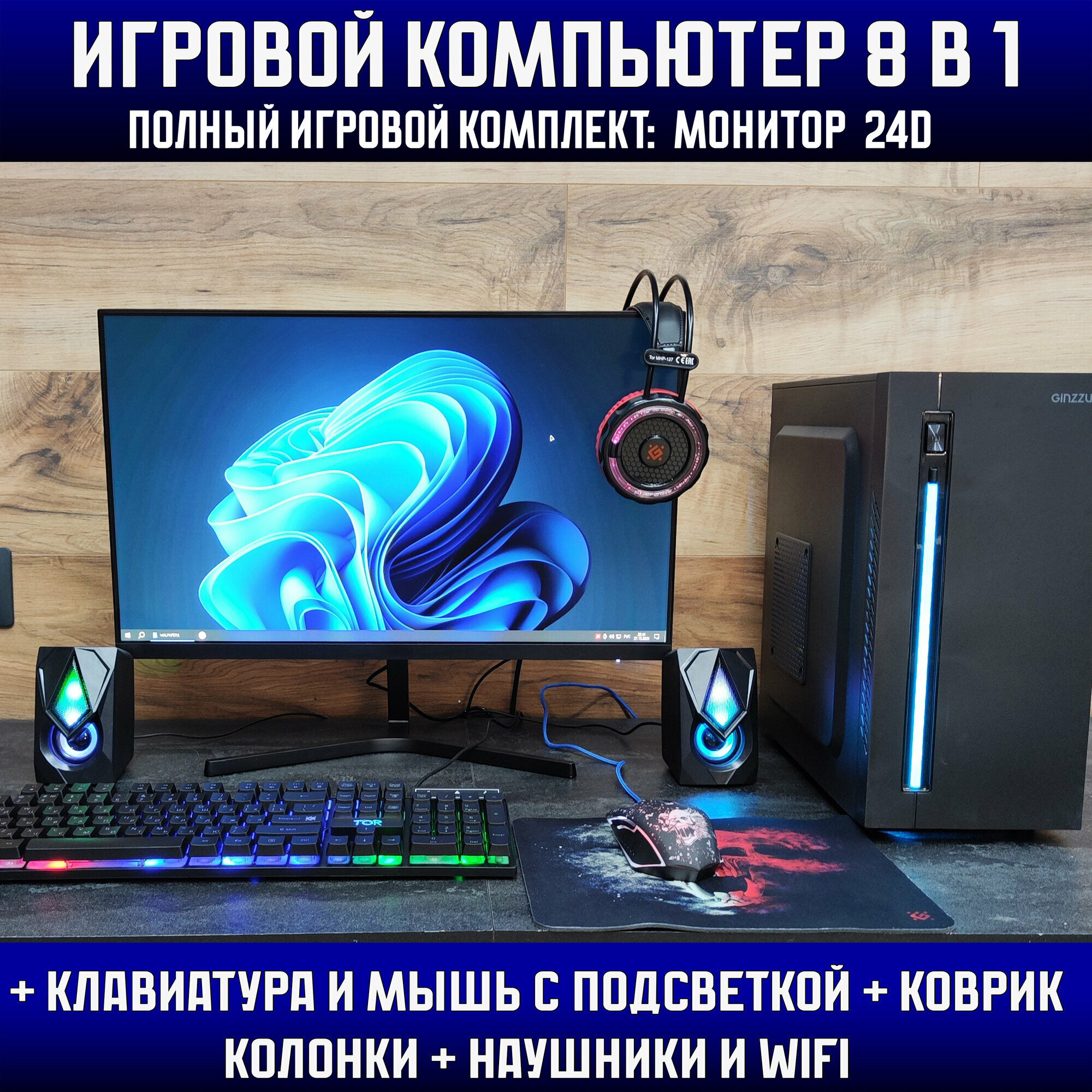 Игровой набор 8в1 \Системный блок\Intel i7 \Ram 8Gb\RX 590 \SSD 240Gb\500w\Игровой компьютер+ клавиатура+ мышь+ гарнитура+ колонки монитор 24d