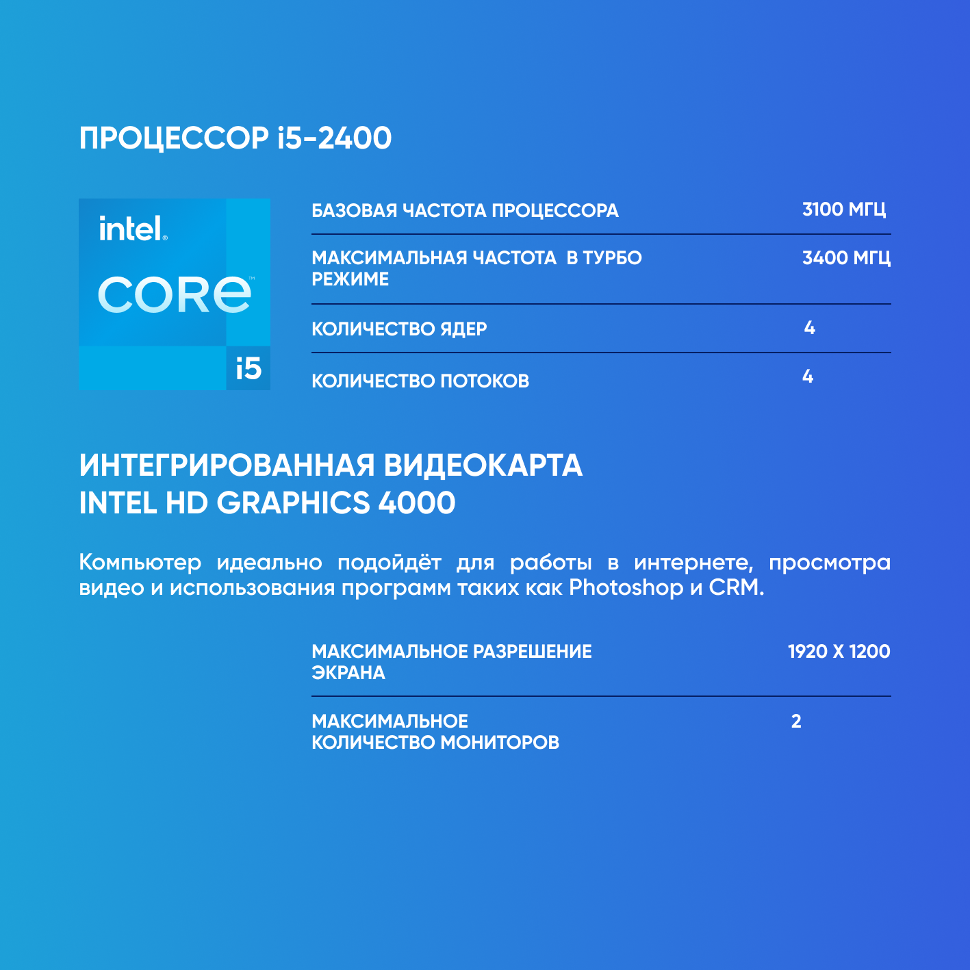 Системный блок Компьютер офисный ПК (Intel Core i5-2400 (3.4 ГГц), RAM 8 ГБ, SSD 256 ГБ, Windows 10), черный матовый