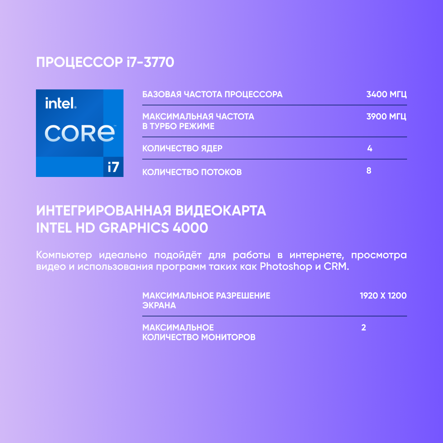 Ниже Вы можете прочитать отзывы на Системный блок Компьютер офисный ПК (Intel Core i7-3770 (3.4 ГГц), RAM 16 ГБ, SSD 256 ГБ, Windows 10), чёрный, ознакомится с подробными характеристиками, посмотреть интересные обзоры и фотографии на Системный блок Компьютер офисный ПК (Intel Core i7-3770 (3.4 ГГц), RAM 16 ГБ, SSD 256 ГБ, Windows 10), чёрный.