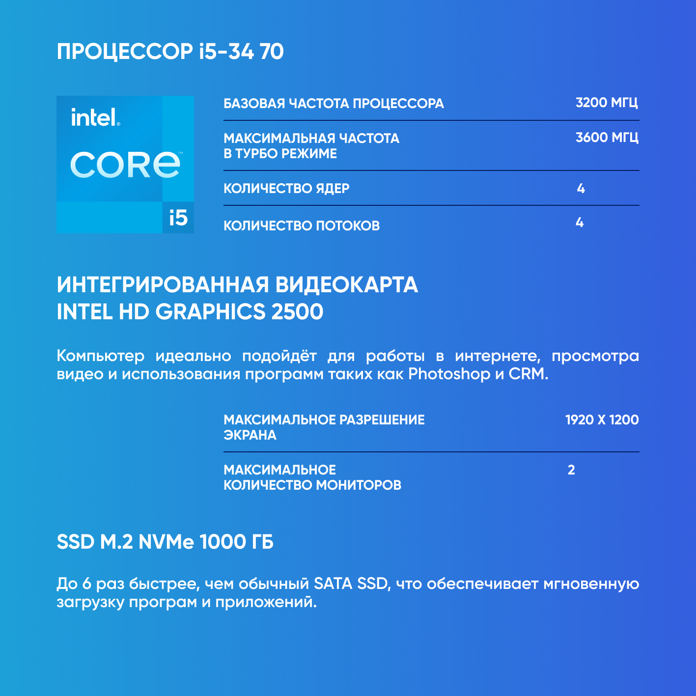 СохранитьСистемный блок Компьютер офисный ПК (Intel Core i5-3470 (3.2 ГГц), RAM 16 ГБ, SSD 1000 ГБ, Windows 10), черный матовый интересное: