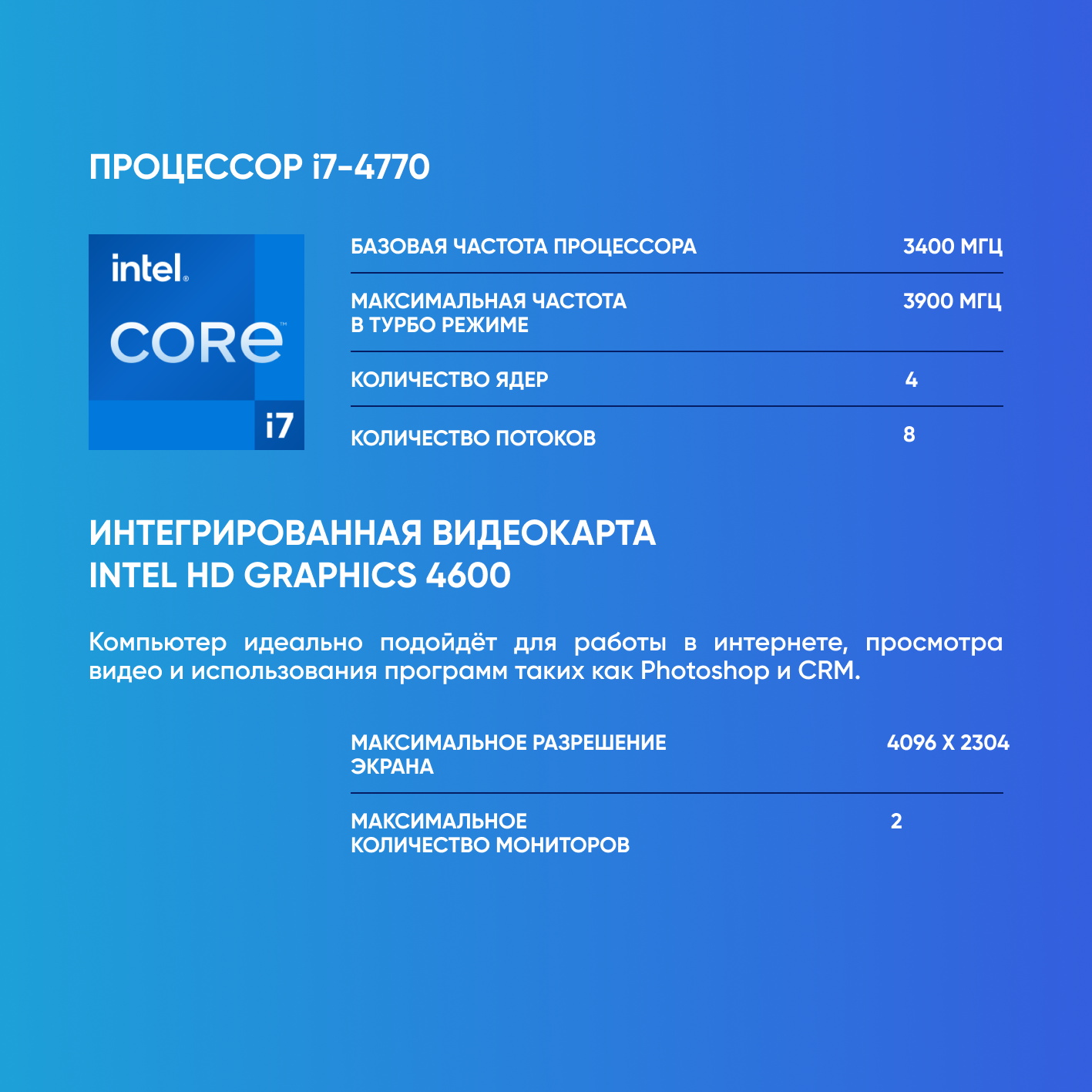 Системный блок Компьютер офисный ПК (Intel Core i7-4770 (3.4 ГГц), RAM 8 ГБ, SSD 256 ГБ, Windows 10), чёрный