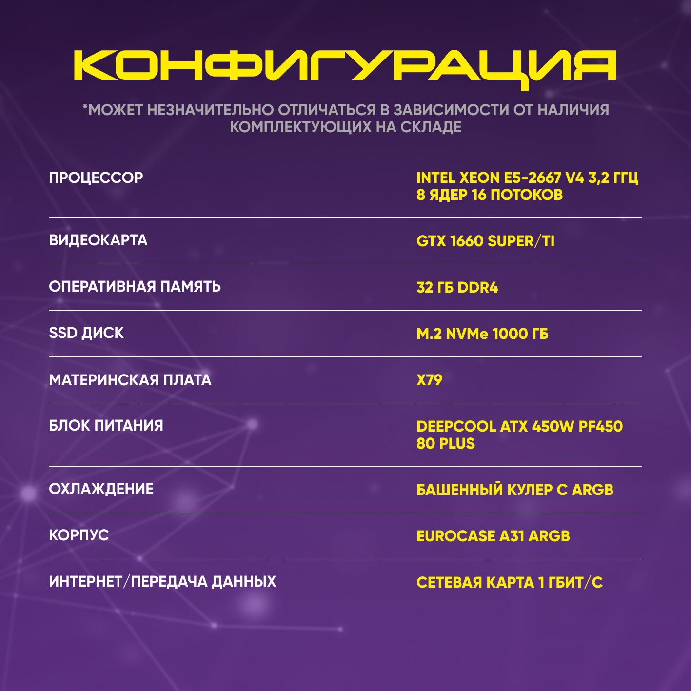 Игровой Компьютер (Intel Xeon E5-2667V4 (2.6 ГГц), RAM 32 ГБ, SSD 512 ГБ, GTX 1660, Windows 10), черный
