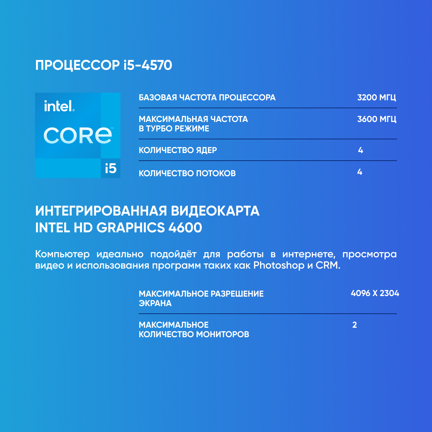 Системный блок Компьютер офисный ПК (Intel Core i5-4570 (3.2 ГГц), RAM 8 ГБ, SSD 256 ГБ, Windows 10), чёрный