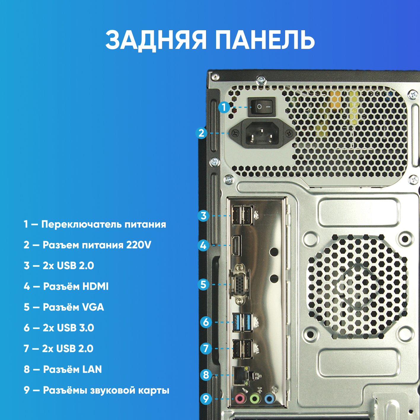 Системный блок Компьютер Офисный ПК (Intel Core i3-2100 (3.1 ГГц), RAM 8 ГБ, SSD 256ГБ, Windows 10), чёрный