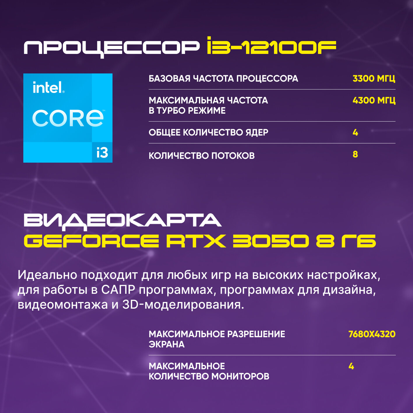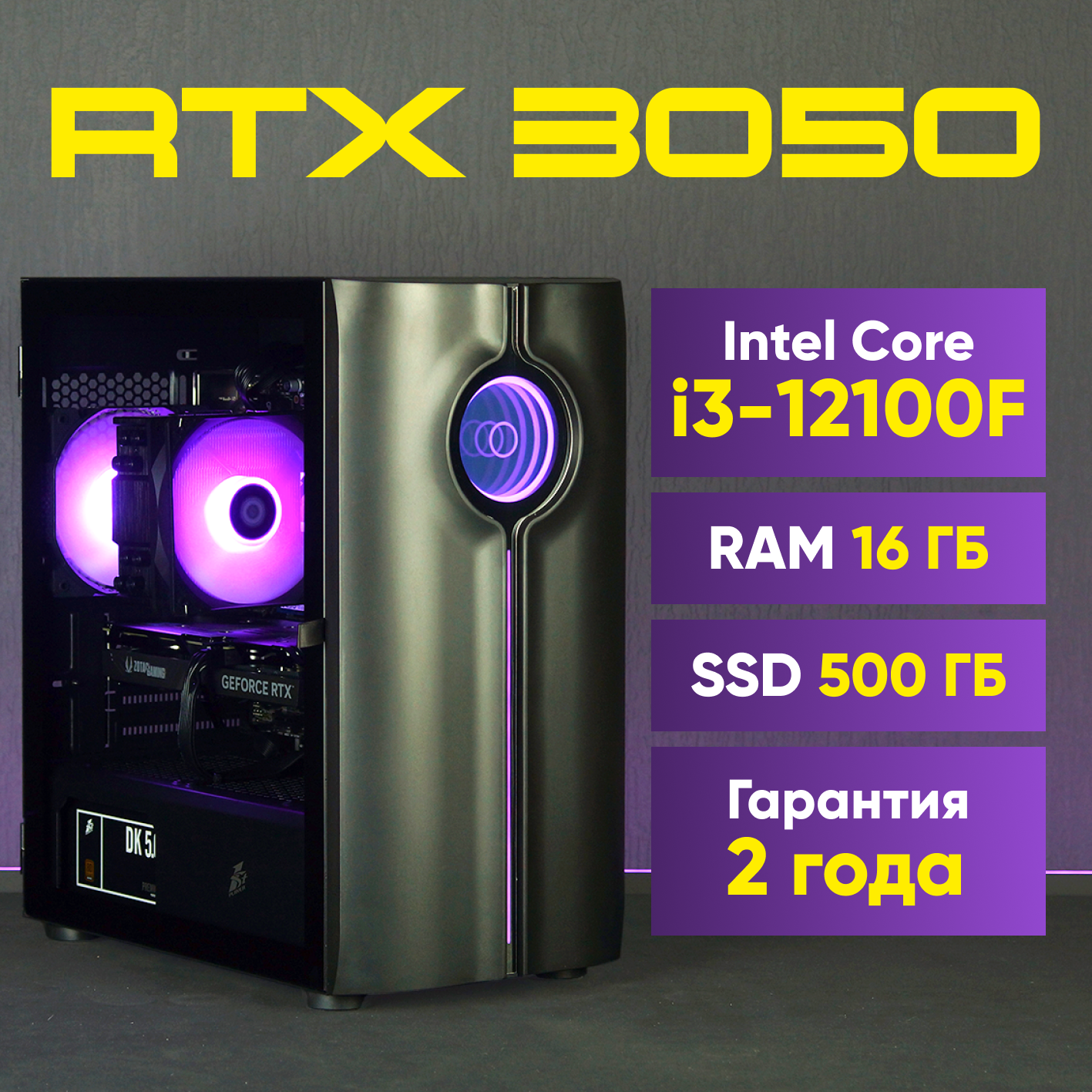 Купить Игровой компьютер (Intel Core i3-12100F (3.3 ГГц), RAM 16 ГБ, SSD 500 ГБ, RTX 3050 8 ГБ, Windows 11), черный матовый