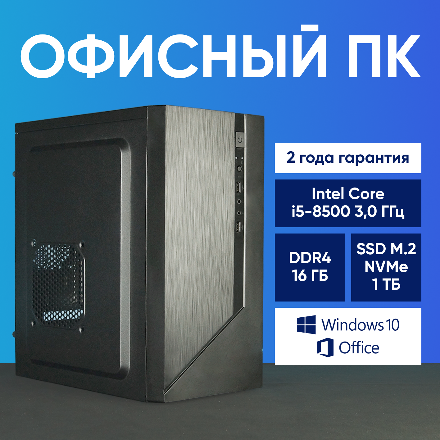 Купить Системный блок Компьютер офисный ПК (Intel Core i5-8500 (3.0 ГГц), RAM 16 ГБ, SSD 1000 ГБ, Windows 10), черный матовый