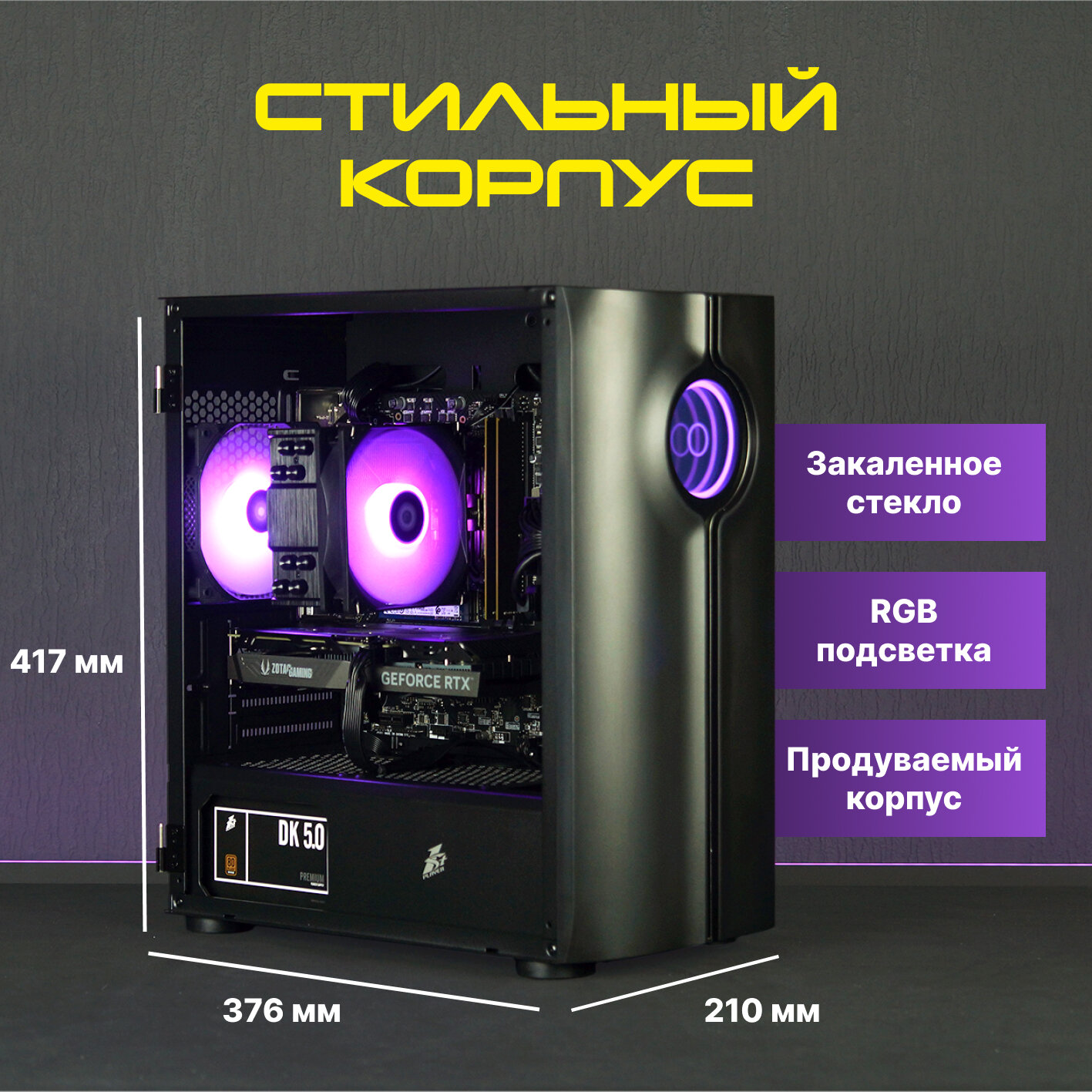Игровой компьютер (Intel Core i5-12400F (2.5 ГГц), RAM 16 ГБ, SSD 500 ГБ, RTX 3050 8 ГБ, Windows 11), черный матовый