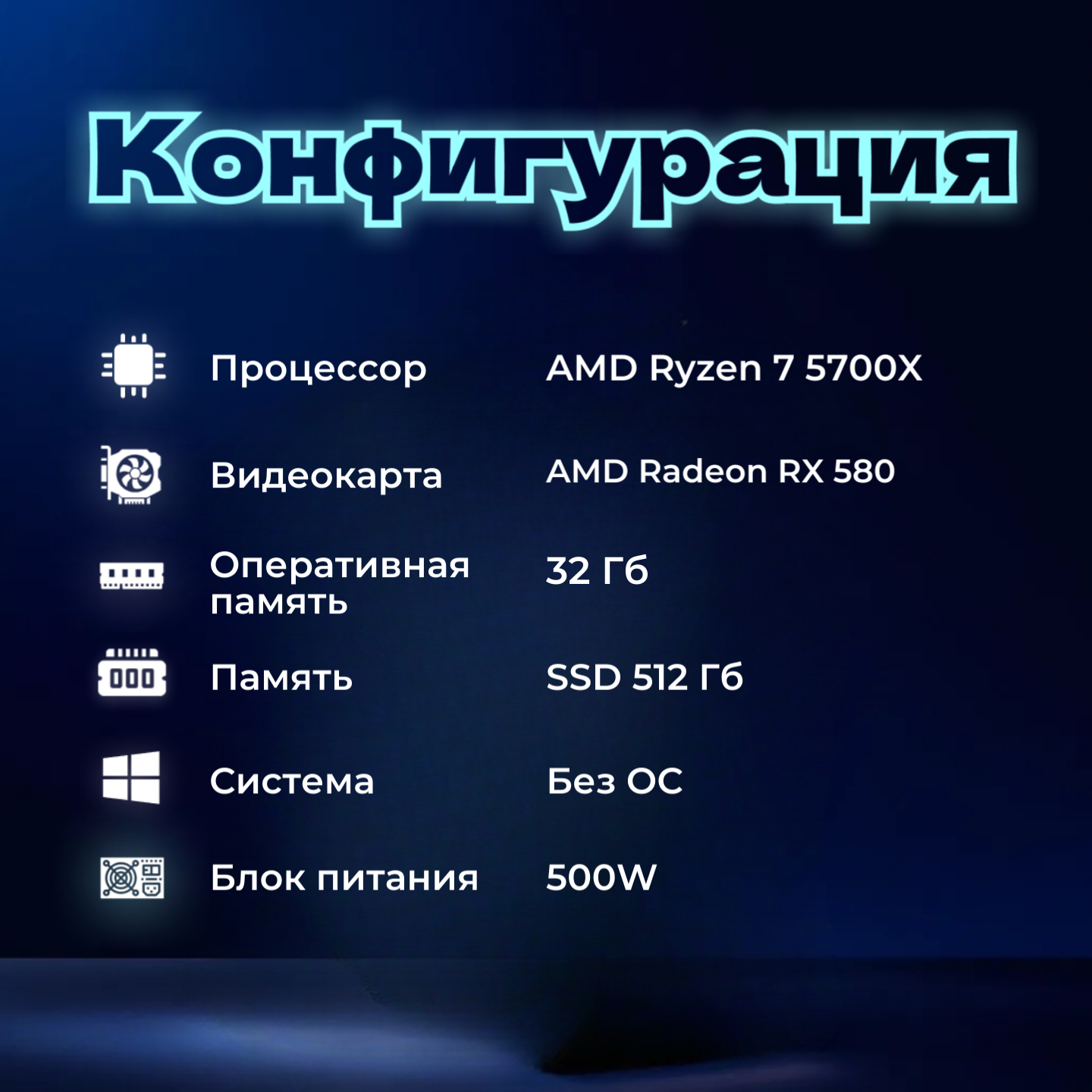 Купить Системный блок TopComp MG 51987060 AMD Ryzen 7 5700X /Amd B550 /32 Гб /SSD512 Гб /HDDотсутствует /AMD Radeon RX 580 /Без ОС