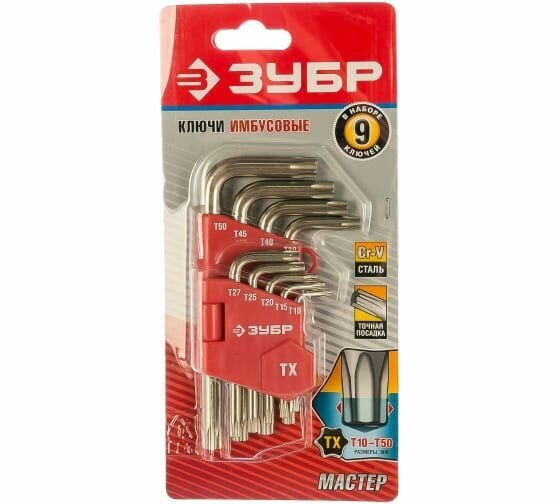 Набор имбусовых коротких ключей TORX Т10-Т50, 9 шт ЗУБР мастер 27462-1_z02