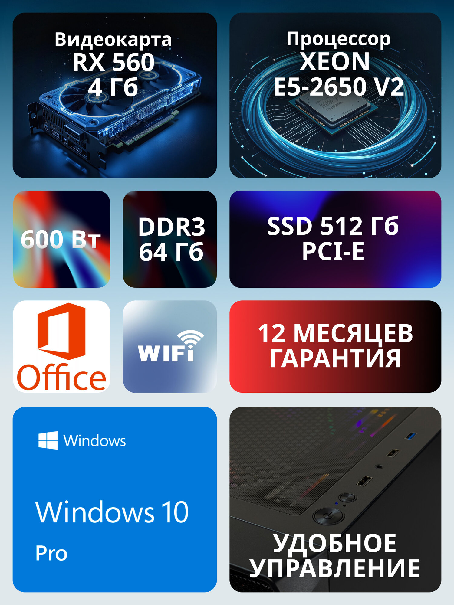 Игровой компьютер юкомс i5 3470, GTX 1050 2GB, HDD 1TB, SSD 256GB, 8GB DDR3, БП TT450 450W, win 10 pro, Игровой юкомс белый