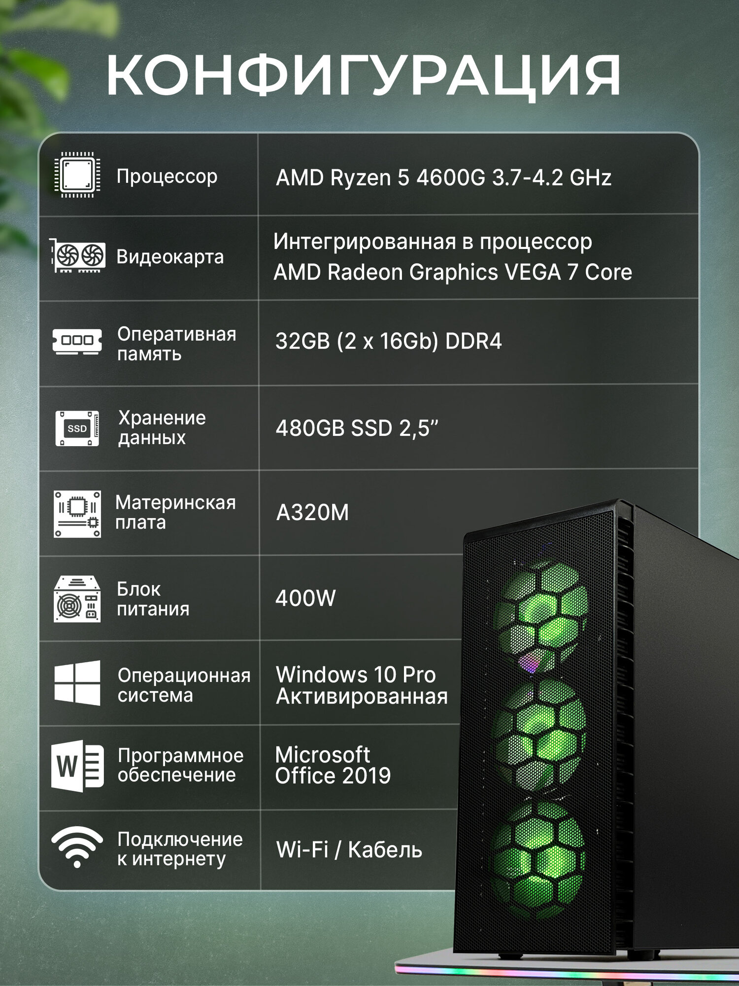 Компьютер GANSOR-3074863 Intel i3-10300 3.7 ГГц, B460, 64Гб 2666 МГц, SSD 480Гб, HDD 3Тб, Intel HD Graphics 630, 500Вт, Midi-Tower (Серия OPTIMAL)