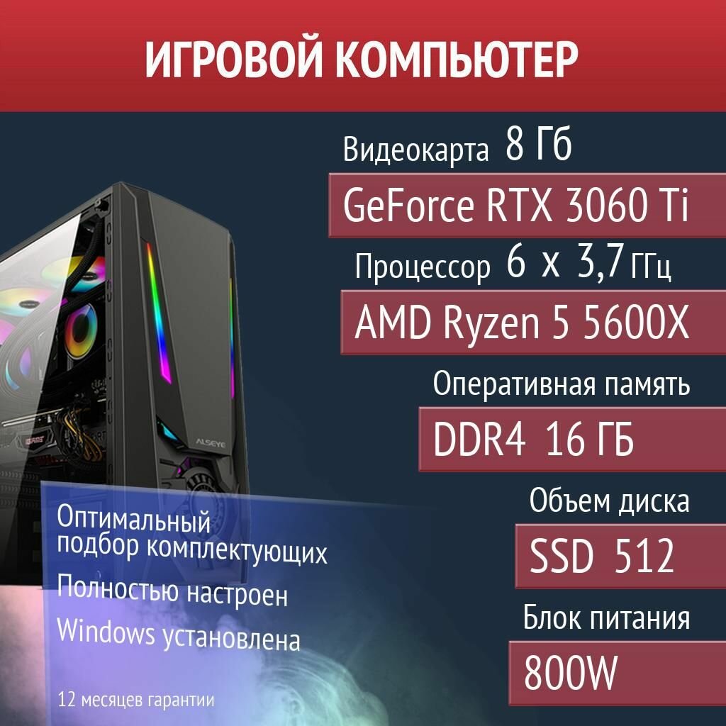Игровой компьютер DayZ, Dota 2, Cyberpunk 2077 NVIDIA GeForce RTX 3070 Ti (8 Гб) AMD Ryzen 5 5600X