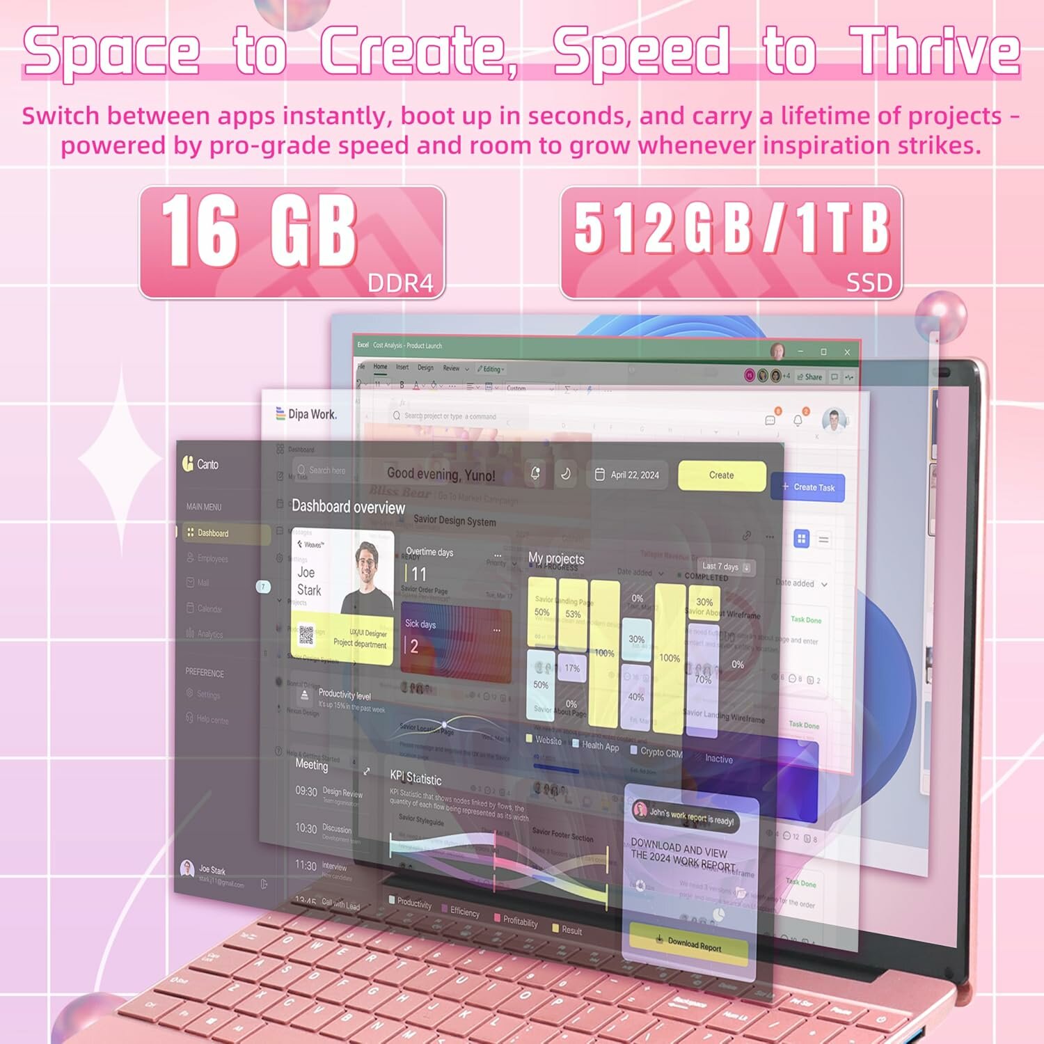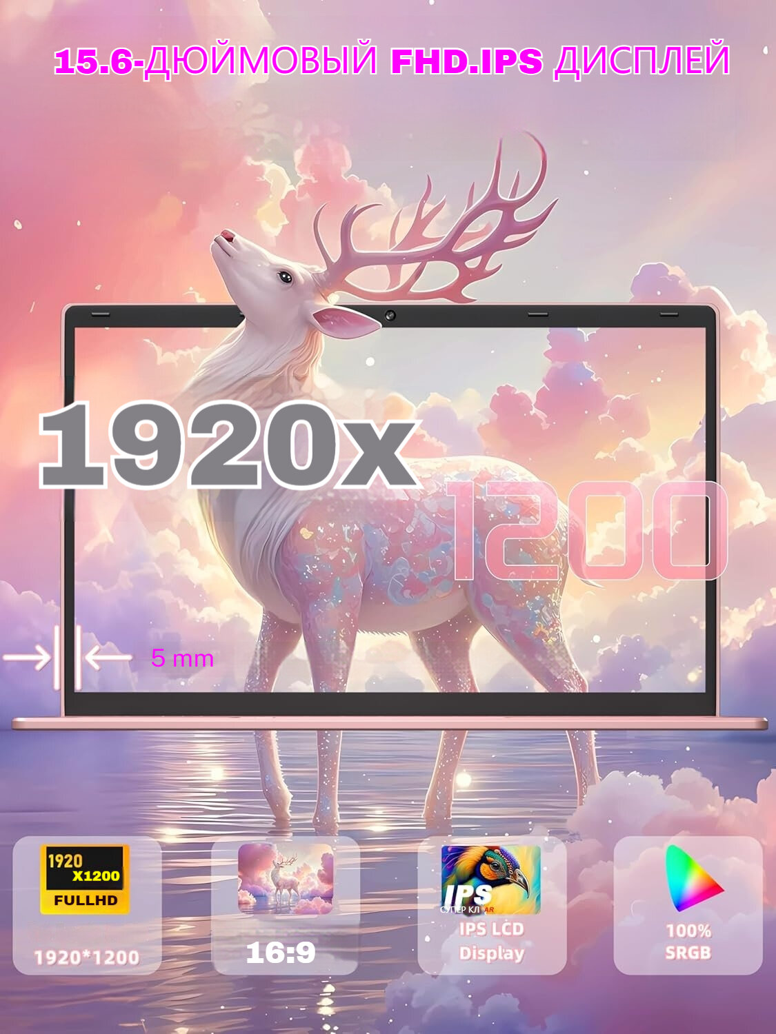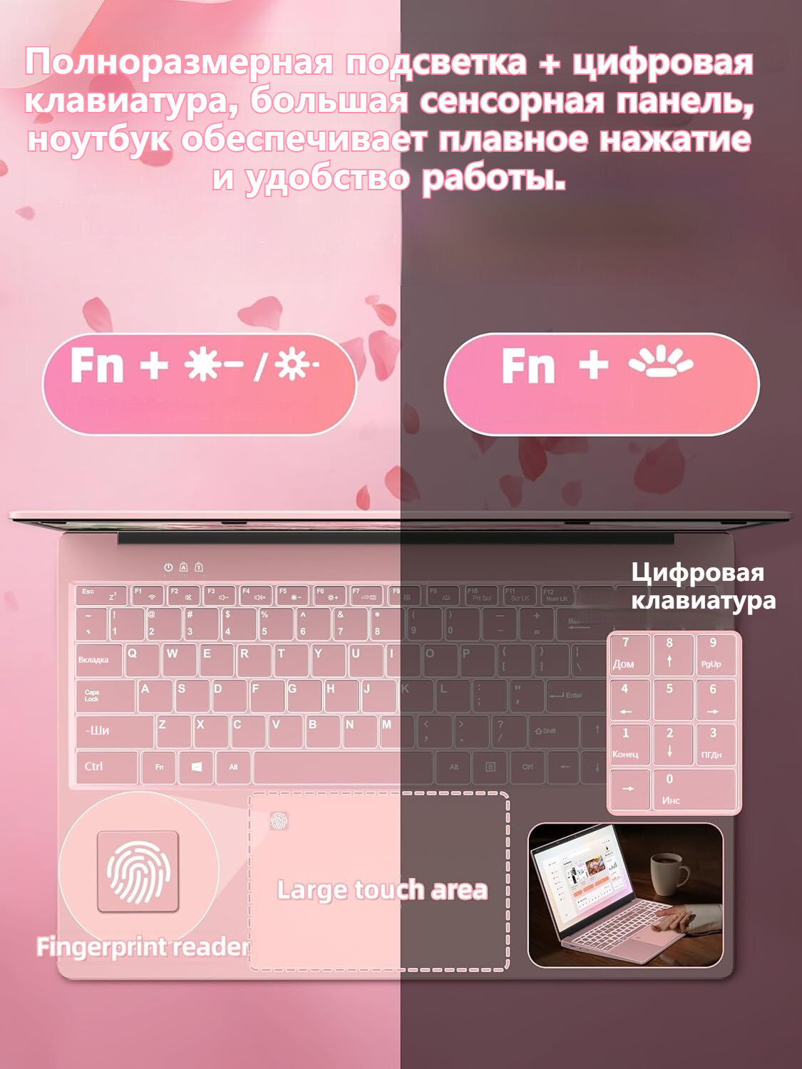 Ноутбук 15.6", Intel N95 (3.4 ГГц), RAM 16 ГБ, SSD 512 ГБ, Intel UHD Graphics, Windows 11 Pro, Розовый подарок, Русская раскладка