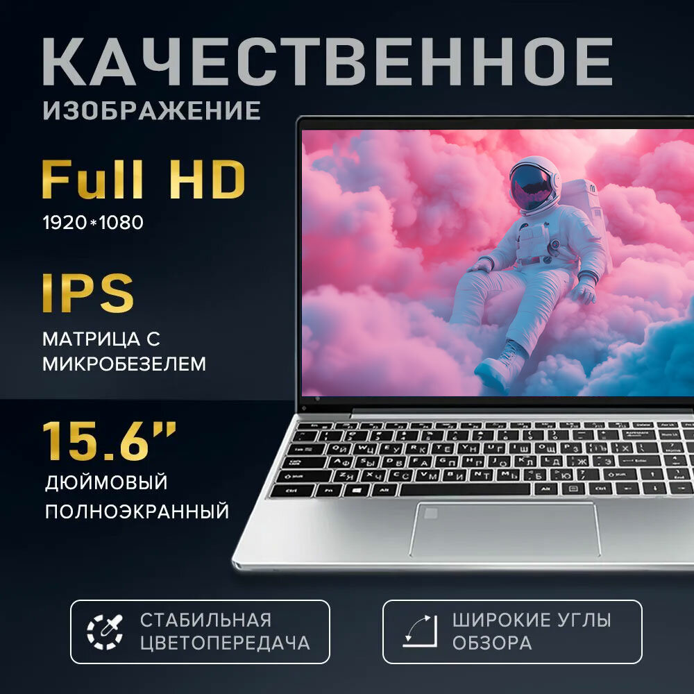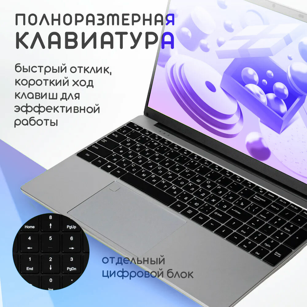 Ноутбук 15,6" с процессором Intel Celeron5095, 16 Гб ОЗУ, 512 Гб SSD, Windows 11 Серебро