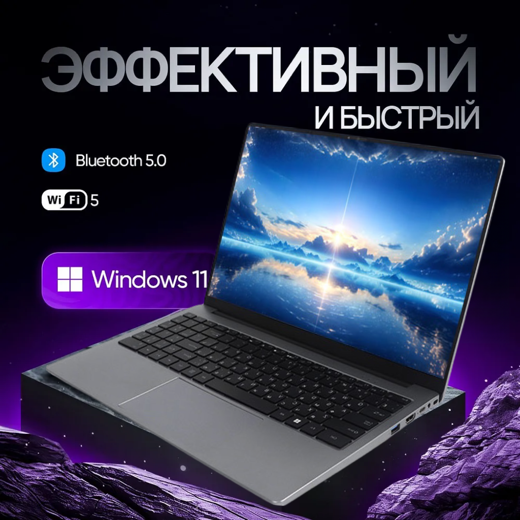 Ноутбук 15.6", Intel N95 (3.4 ГГц), RAM 16 ГБ, SSD 1024ГБ, Intel UHD Graphics, Windows 11 Pro, Серый, Русская раскладка