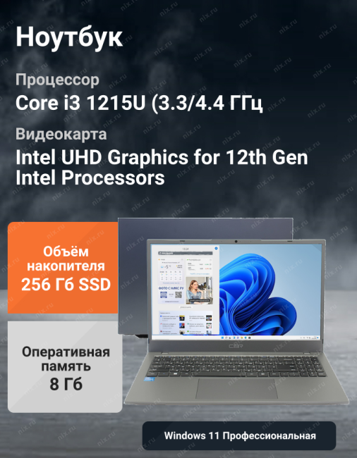 Cbr Ноутбук 15,6' Intel Core i3 1920x1080, 8 ГБ 256 ГБ 4500 mAh легкий 1,52 кг LP-15101