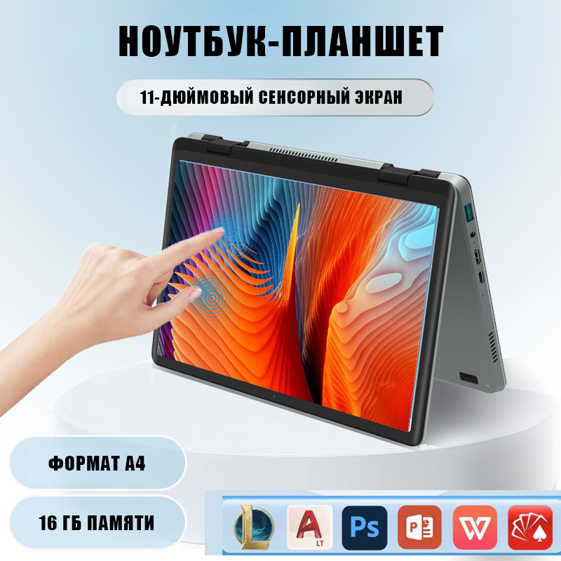 Ноутбук-планшет сенсорный, FullHD IPS 11", Intel N100, RAM 16Гб, SSD 512Гб NVME, Windows 11 Pro интересное: