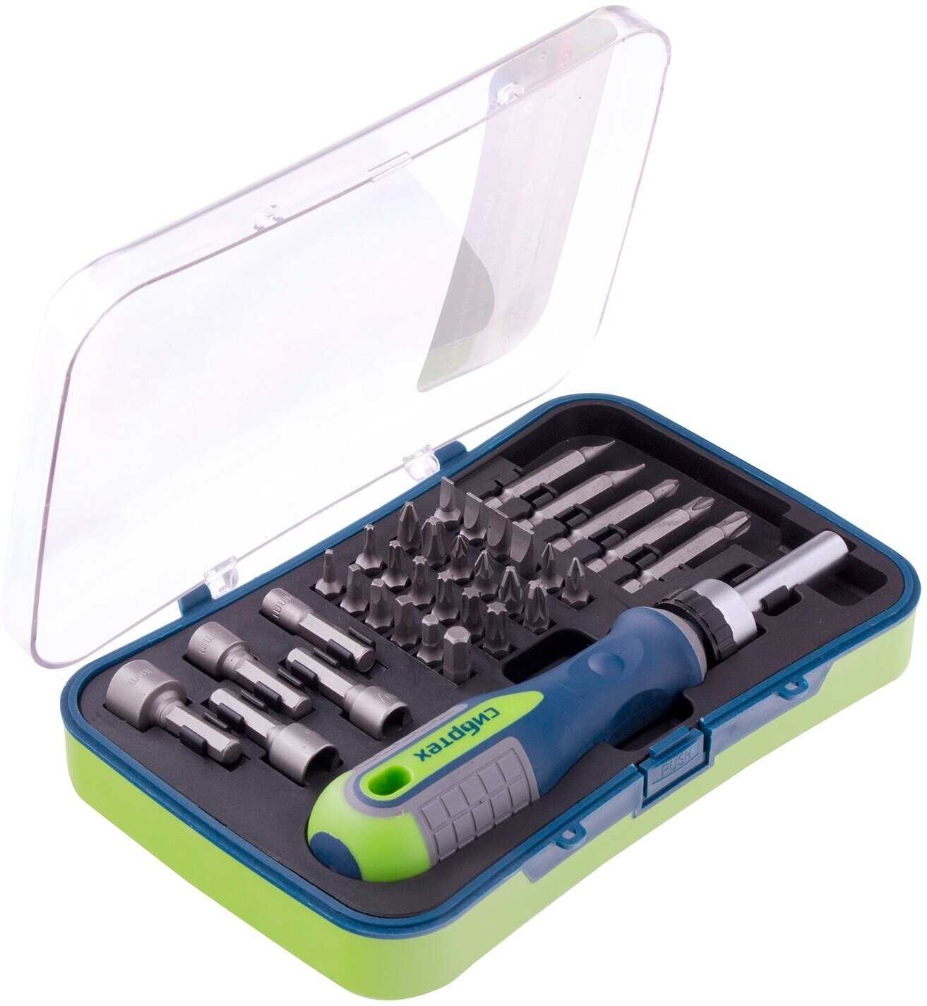 СИБРТЕХ 13337 Отвертка реверсивная с набором бит и торцевыми головками, 35 шт, CrV Сибртех 13337 СИБРТЕХ 13337