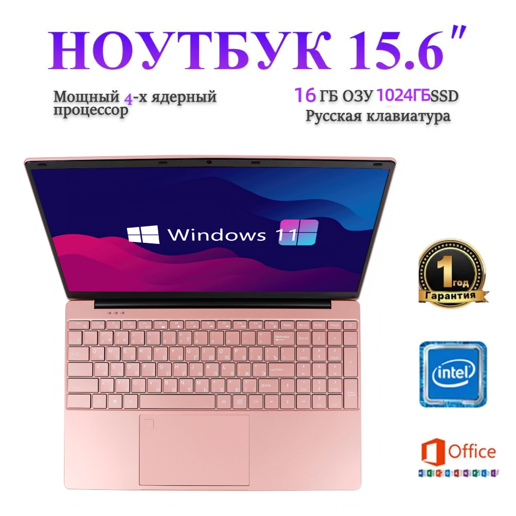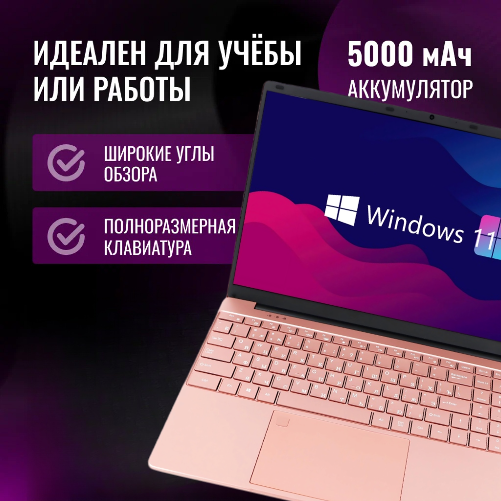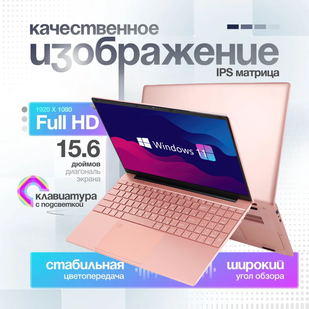 Купить Ноутбук 15,6 дюйма, Intel Celeron N5095, 16 Гб ОЗУ, 1 ТБ SSD, Intel UHD, Windows 11, розовый Русская раскладка