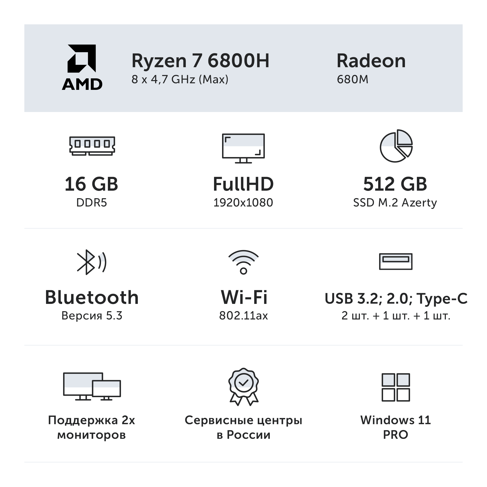 Ноутбук Azerty RBA-4500 (15.6" IPS 1920x1080, Ryzen 7 6800H 8x3.2GHz, 16Gb DDR5, 512Gb SSD) интересное: