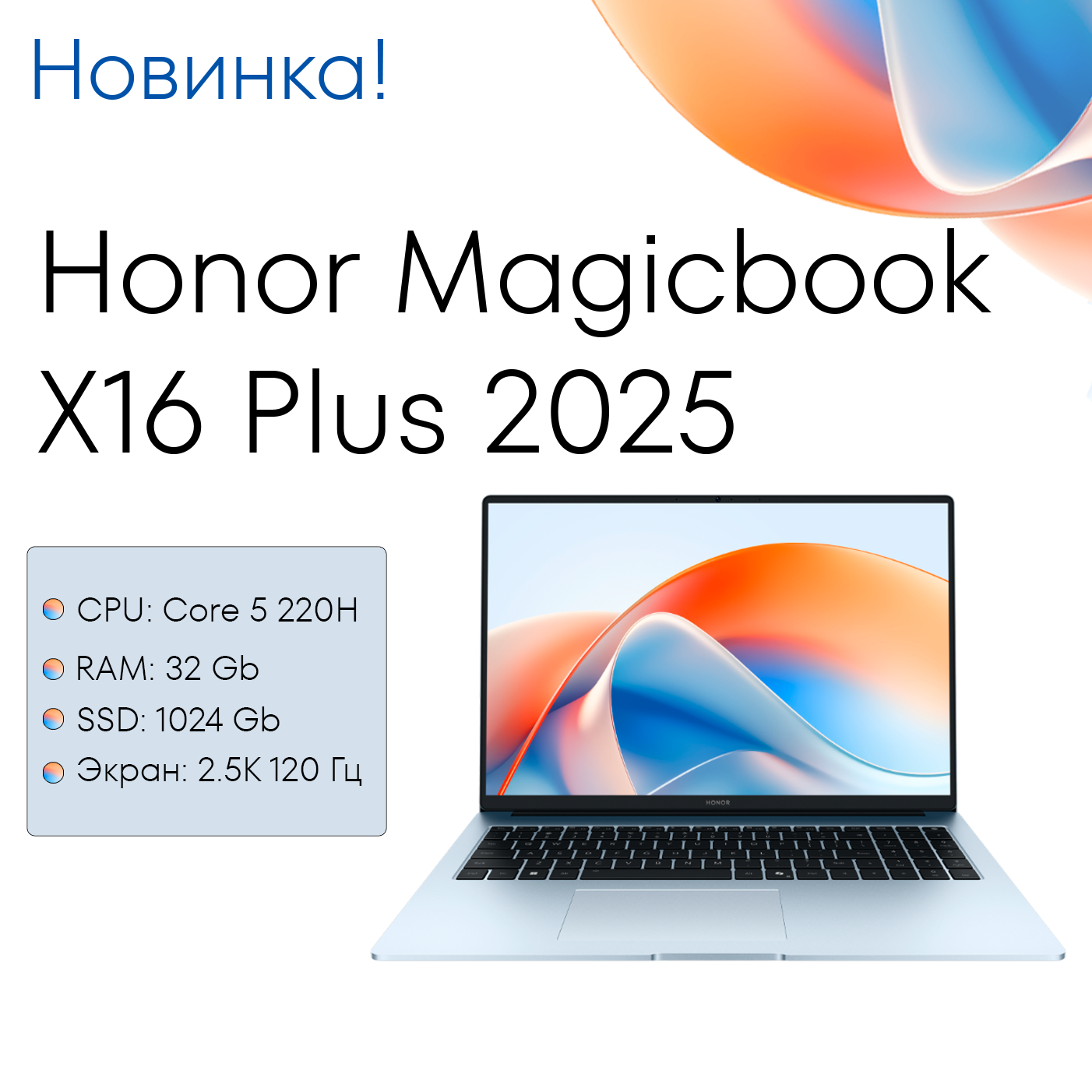Ноутбук Honor MagicBook X16 Plus 2025, 2.5K, Intel Core 5 220H, RAM 32ГБ, 1Тб, Windows 11, Светло-голубой, Русская раскладка интересное: