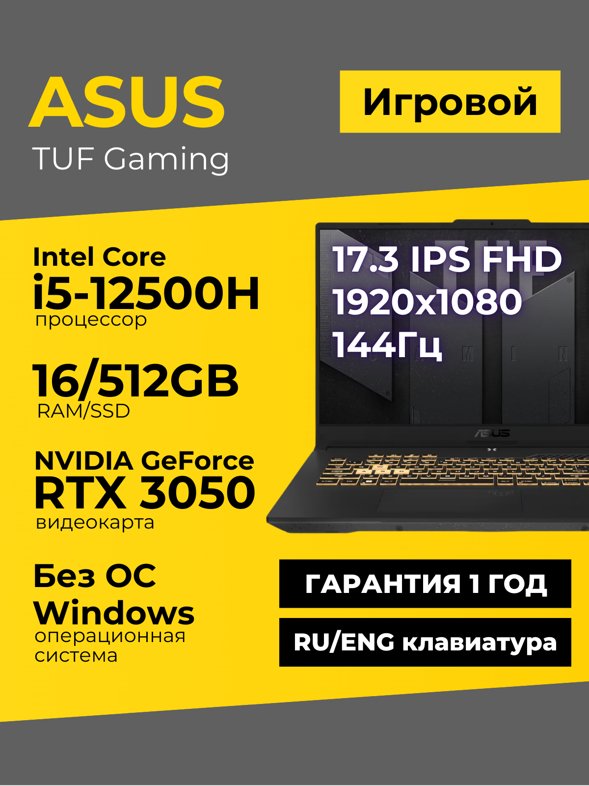 Купить Игровой ноутбук Asus TUF Gaming F17 17.3 IPS 144Гц FHD Core i5-12500H 16ГБ 512ГБ GeForce RTX3050 Серый Без ОС