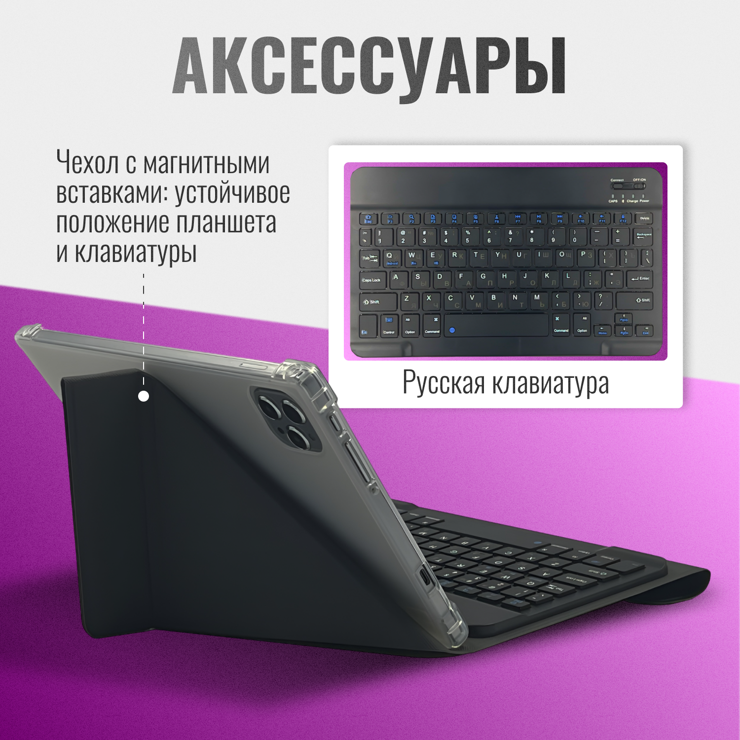 Планшет с клавиатурой 10.1 дюйма, планшет с 2 сим картами, 4 GB RAM, 64 GB ROM, Android 13, 1920x1200, bluetooth, wifi, LTE, русская клавиатура, серый интересное: