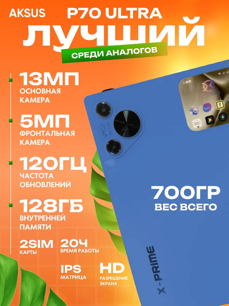 Планшет AKSUS P70ULTRA, Android 13, экран 10,1", 13 Мп, 4 Гб, 128 Гб