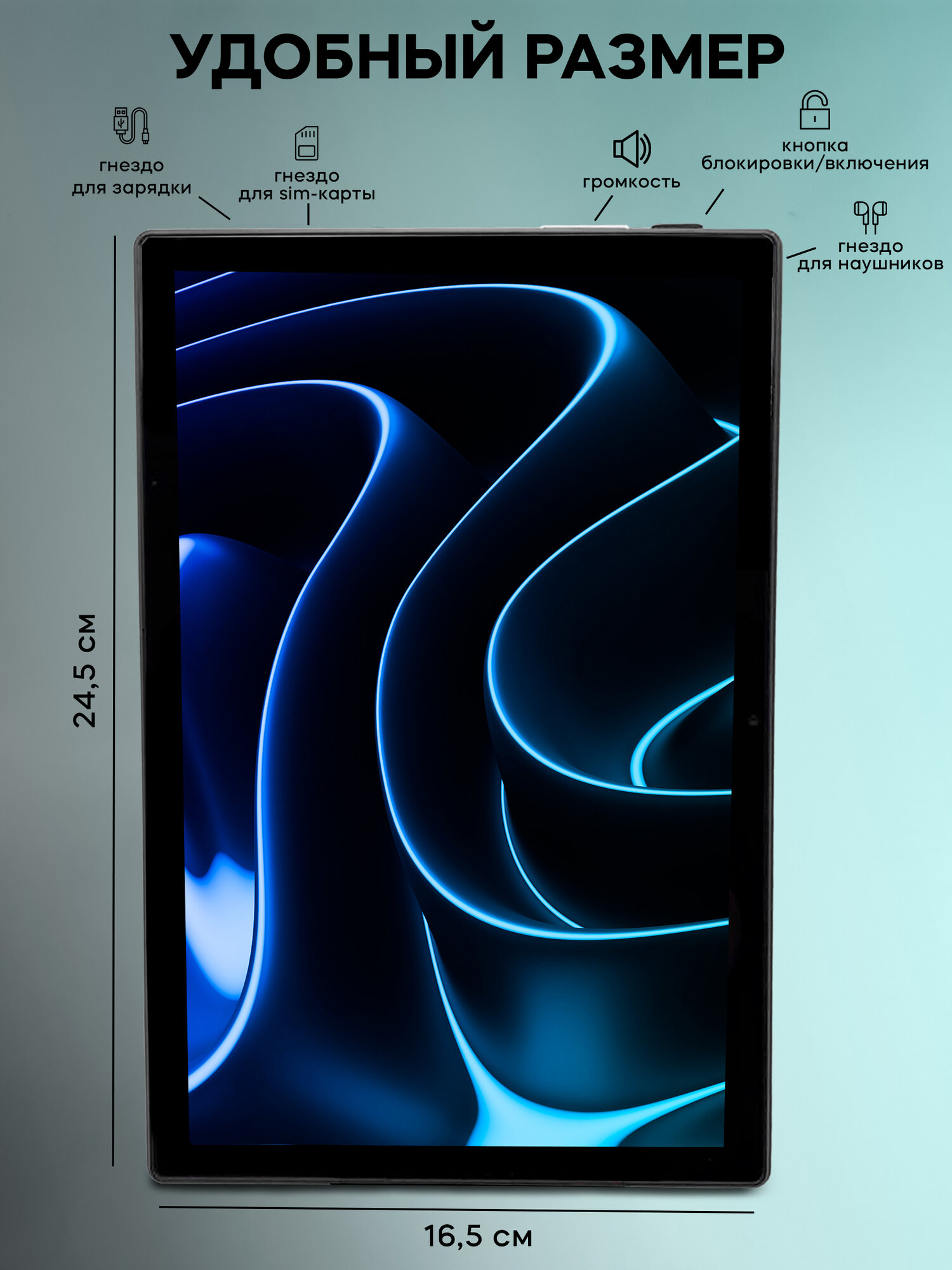 Планшетный компьютер Nodizz Npad 15,12 ГБ ОП, 512ГБ НП, Android 14, экран 10.1" синий